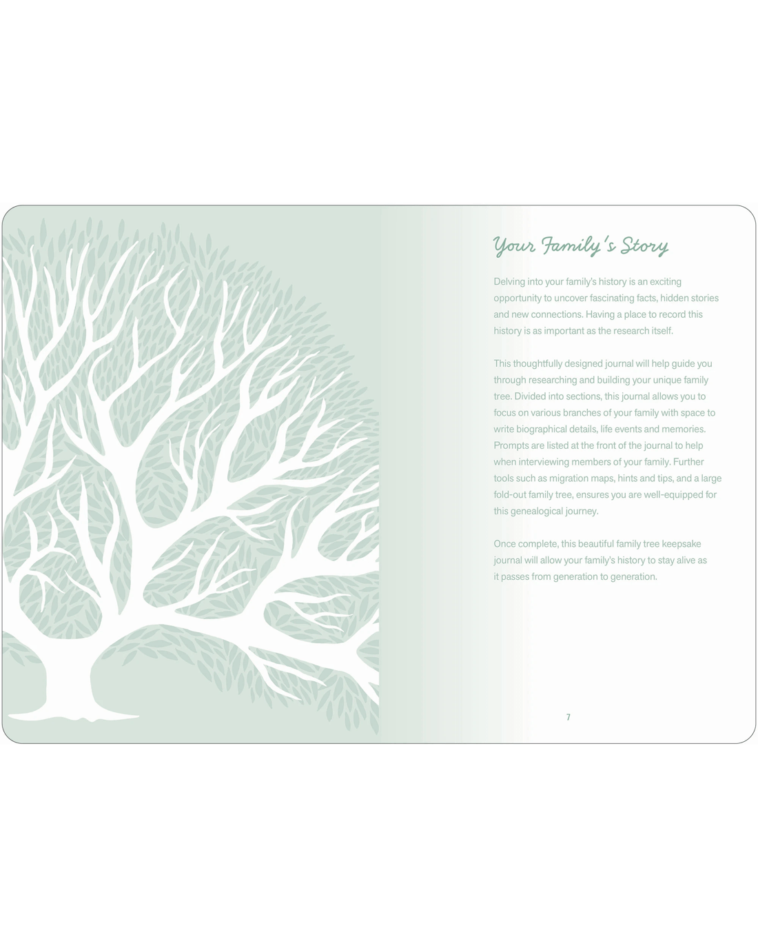 Delve into your family’s history with this thoughtfully designed journal. Divided into sections to focus on various branches of your family, this journal also offers hints and tips, guided prompts and a larger, fold-out family tree to begin your genealogical journey.