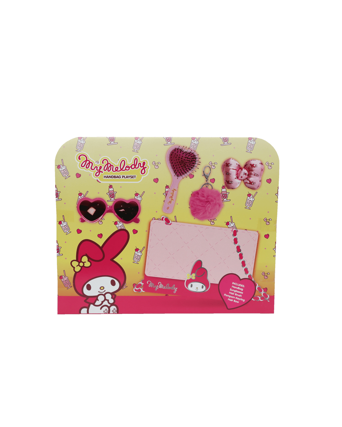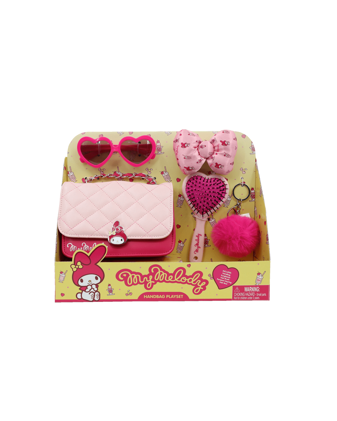 - Includes a handbag, sunglasses, hairbrush, pom pom keyring and hair bow