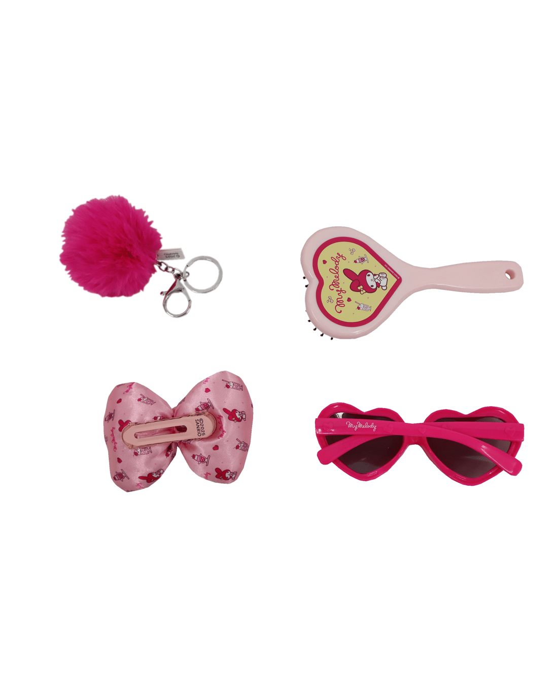 Designed to captivate, each set includes a chic Clutch Handbag, Hair Bow, Hairbrush, Pom Pom Keyring and Sunglasses, making it the ultimate accessory collection for any little fashionista.