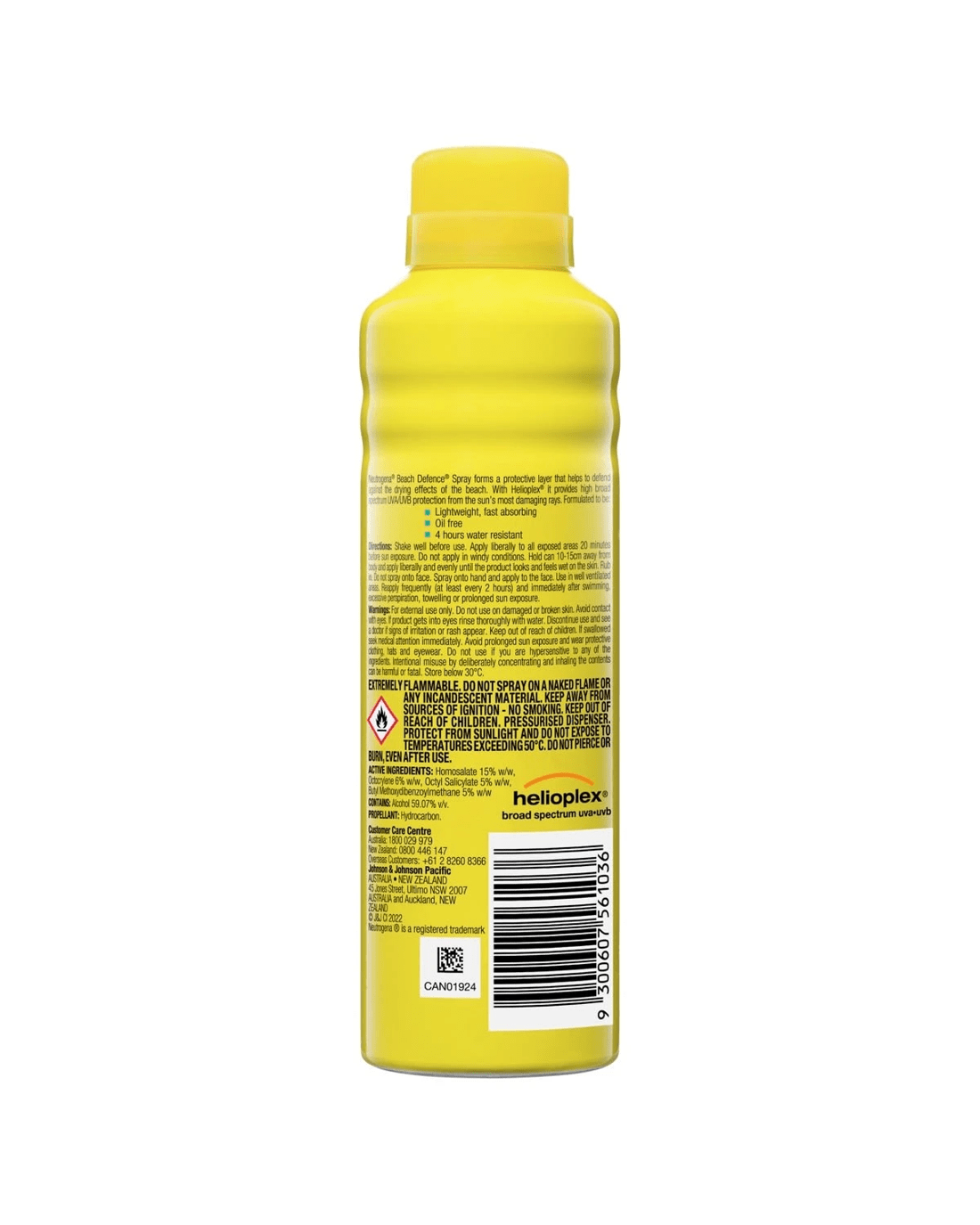 Neutrogena Beach Defence Spray forms a protective layer that helps to defend against the drying effects of the beach. With Helioplex it provides high broad spectrum UVA/UVB protection from the sun's most damaging rays.