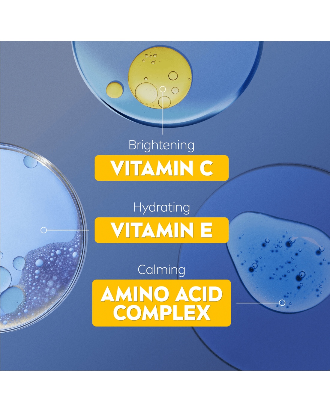 - +5% serum with calming amino acid complex, brightening vitamin C and hydrating E