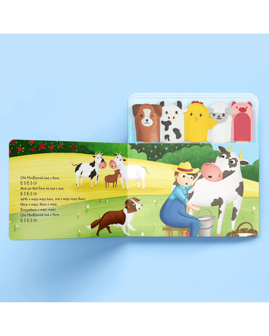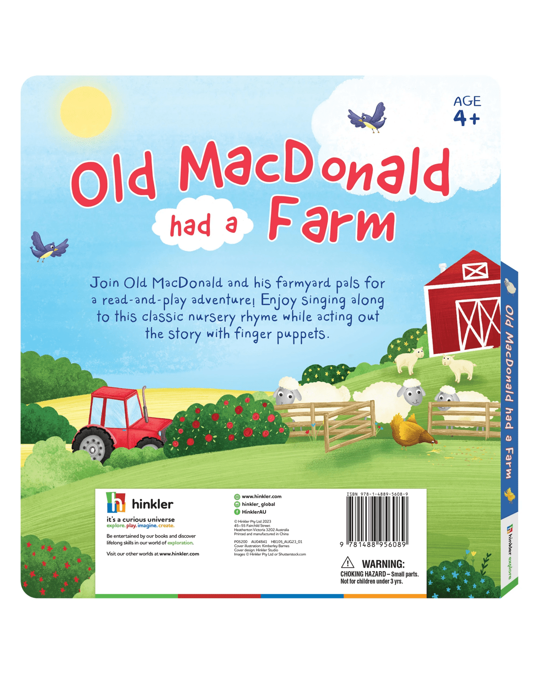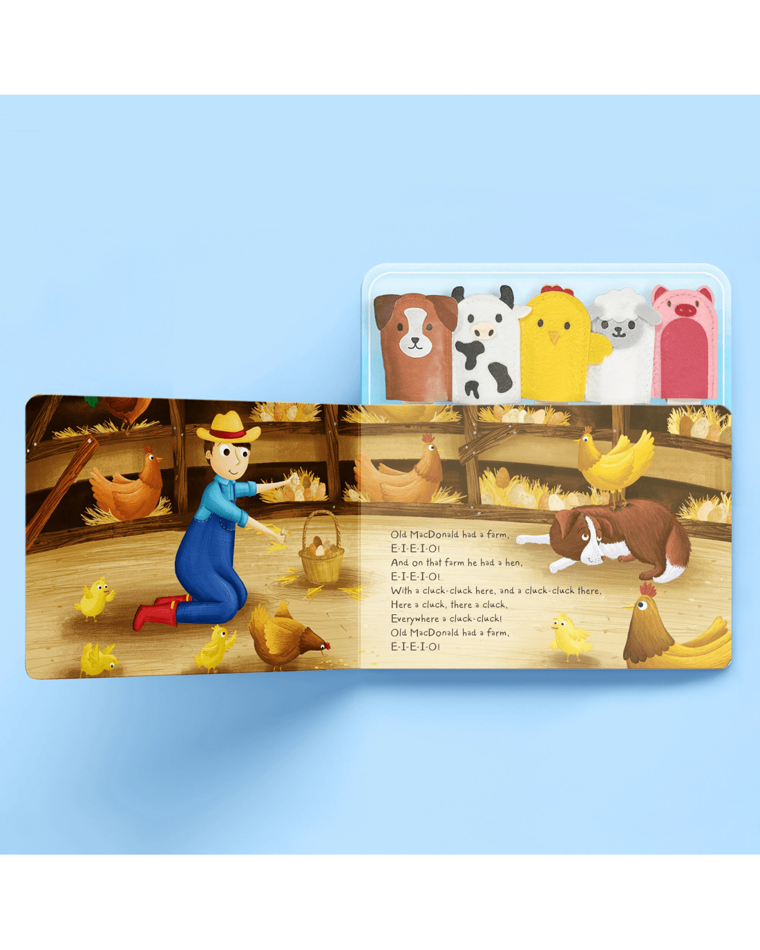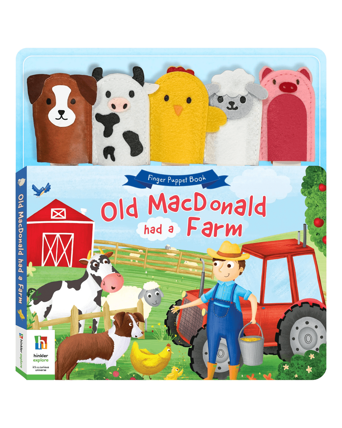 Join Old MacDonald and his farmyard pals for an interactive adventure! Enjoy singing along to this classic nursery rhyme while acting out the story with five adorable finger puppets.