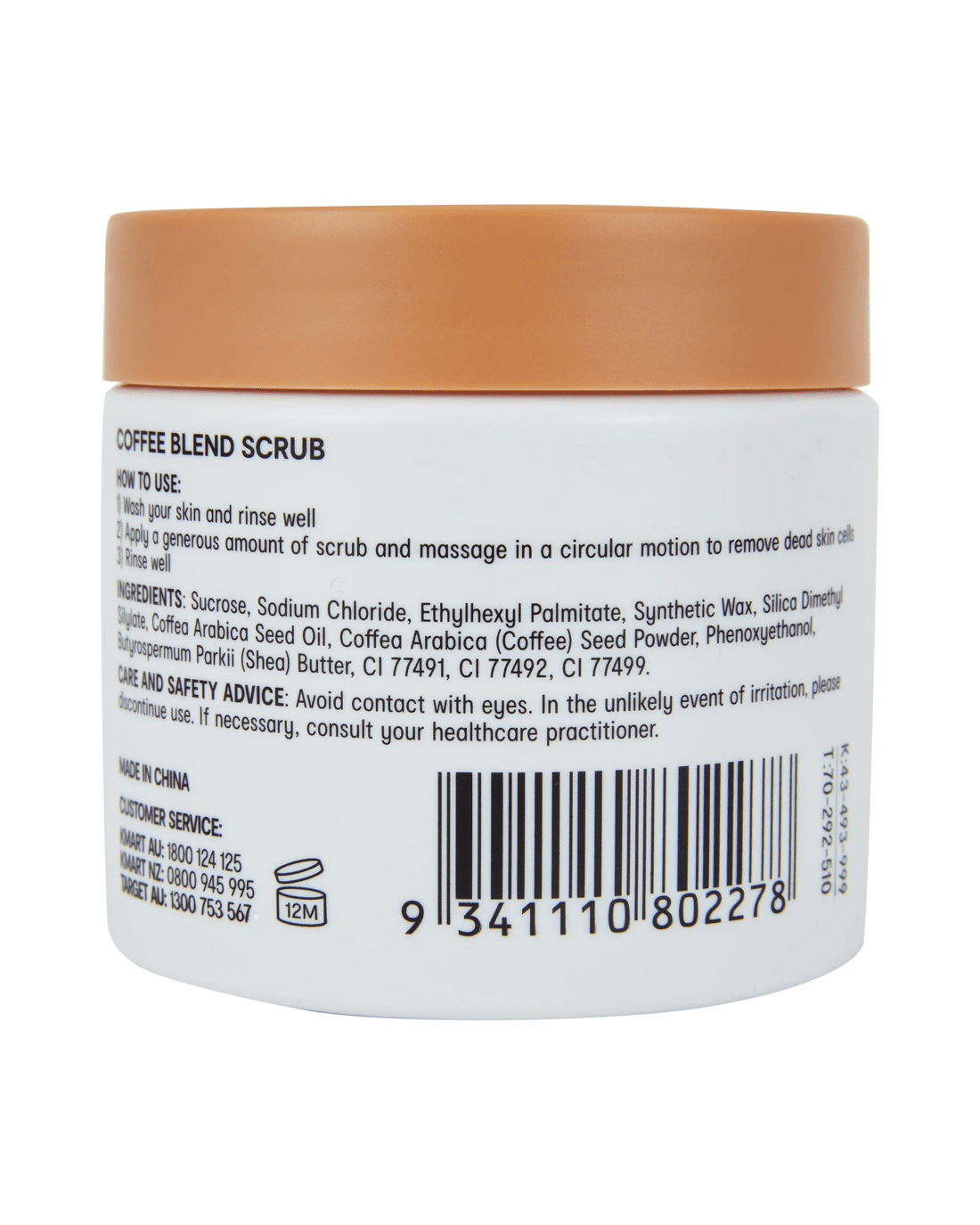 - Ingredients: Sucrose, Sodium Chloride, Ethylhexyl Palmitate, Synthetic Wax, Silica Dimethyl Silylate, Coffea Arabica Seed Oil, Coffea Arabica (Coffee) Seed Powder, Phenoxyethanol, Butyrospermum Parkii (Shea) Butter, CI 77491, CI 77492, CI 77499.