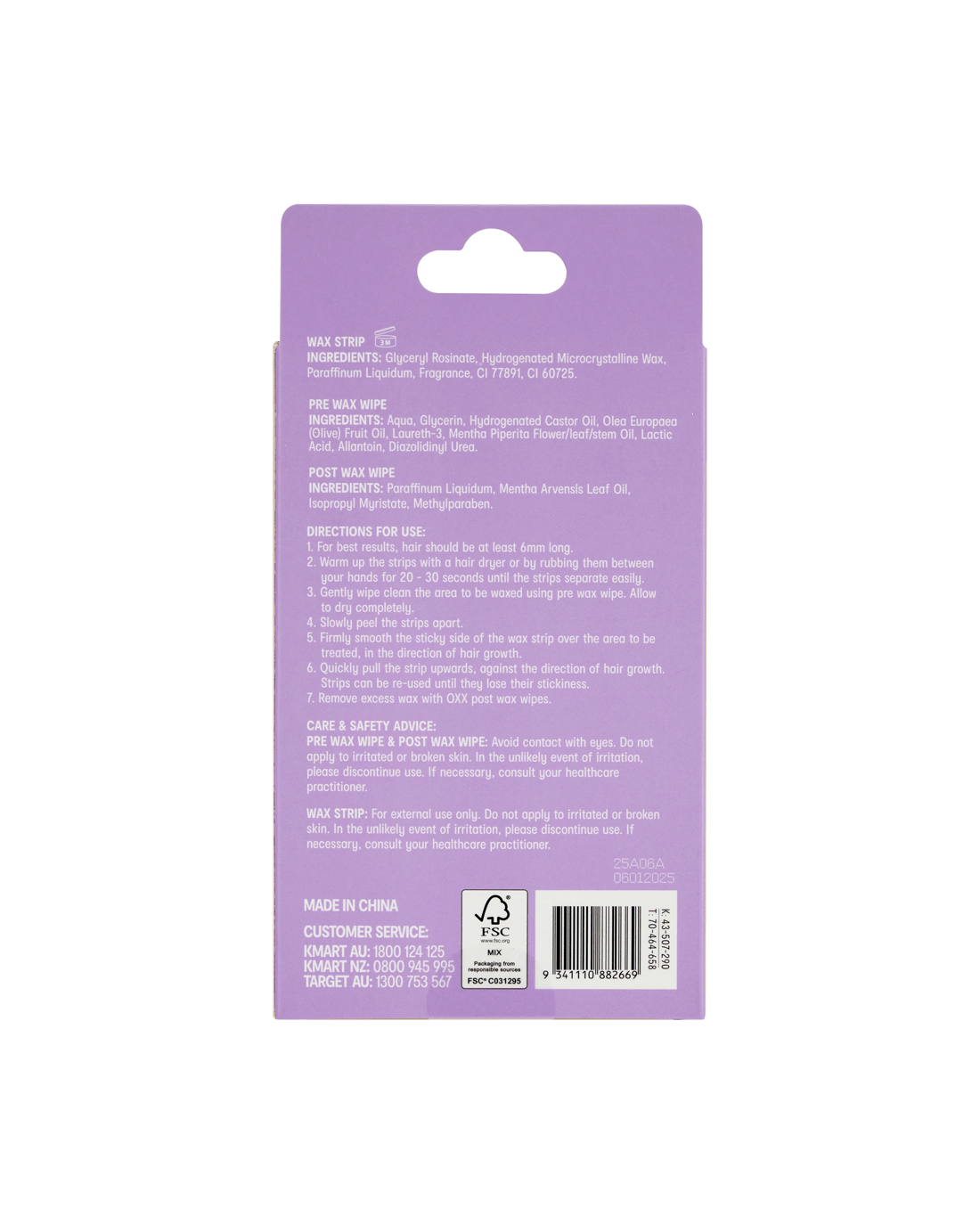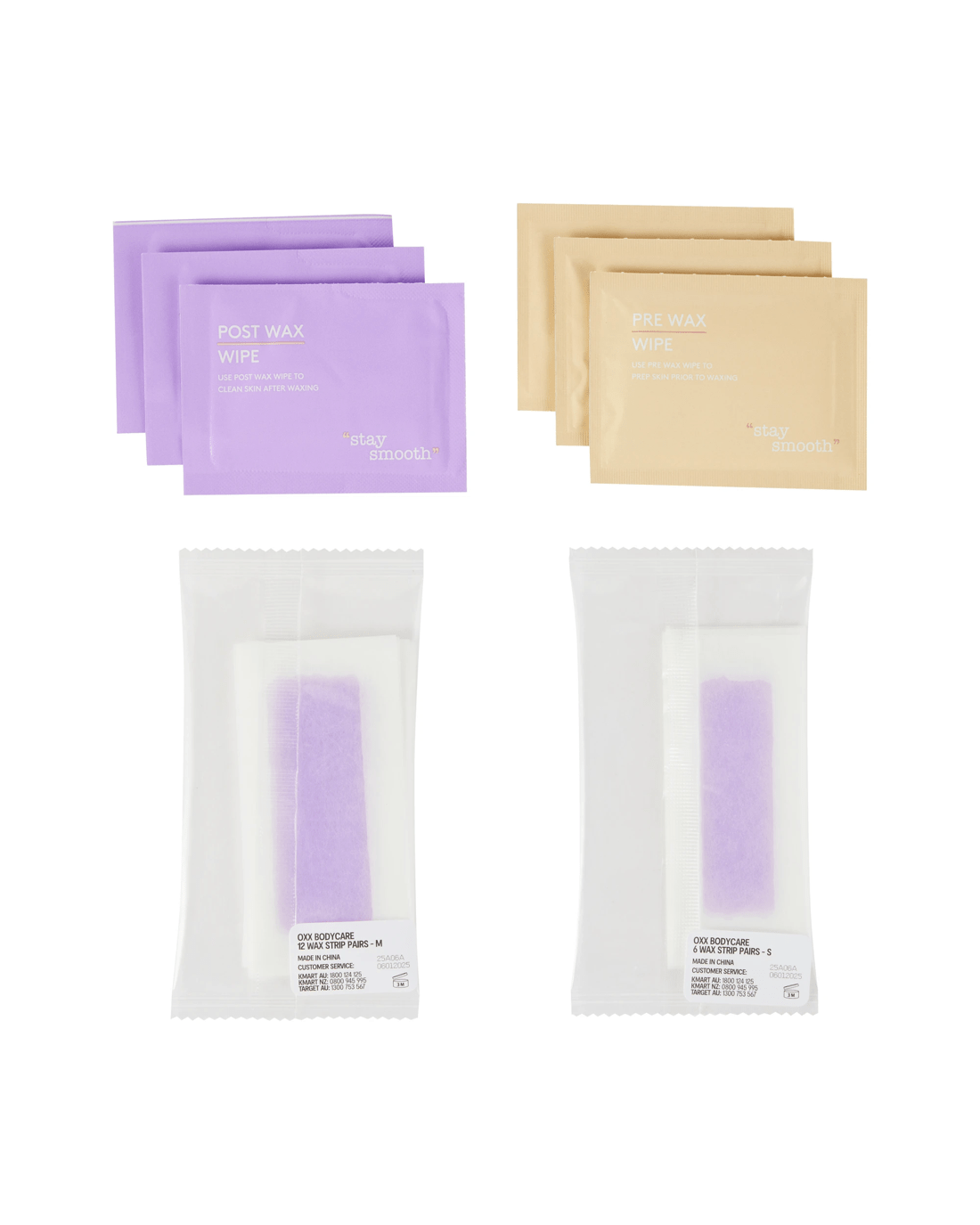 • Includes 12 x medium wax strip pairs, 6 x small wax strips pairs, 3 x pre wax wipes and 3 x post wax wipes