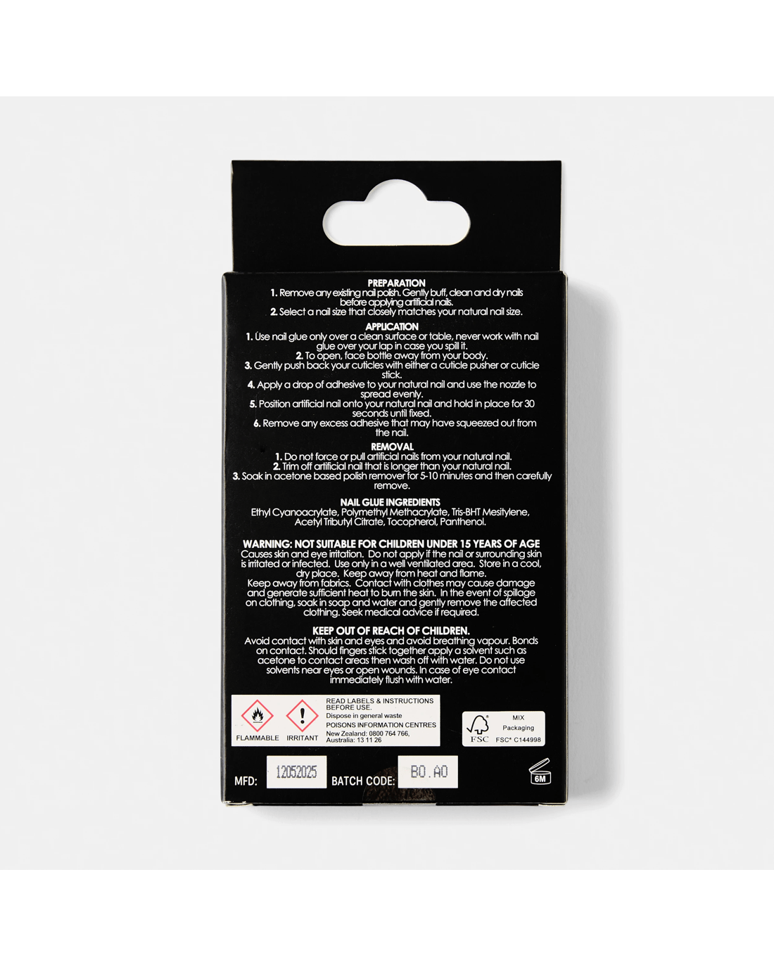 - Glue: Ethyl Cyanoacrylate, Polymethyl Methacrylate, Tris-Bht Mesitylene, Acetyl Tributyl Citrate, Tocopherol, Panthenol