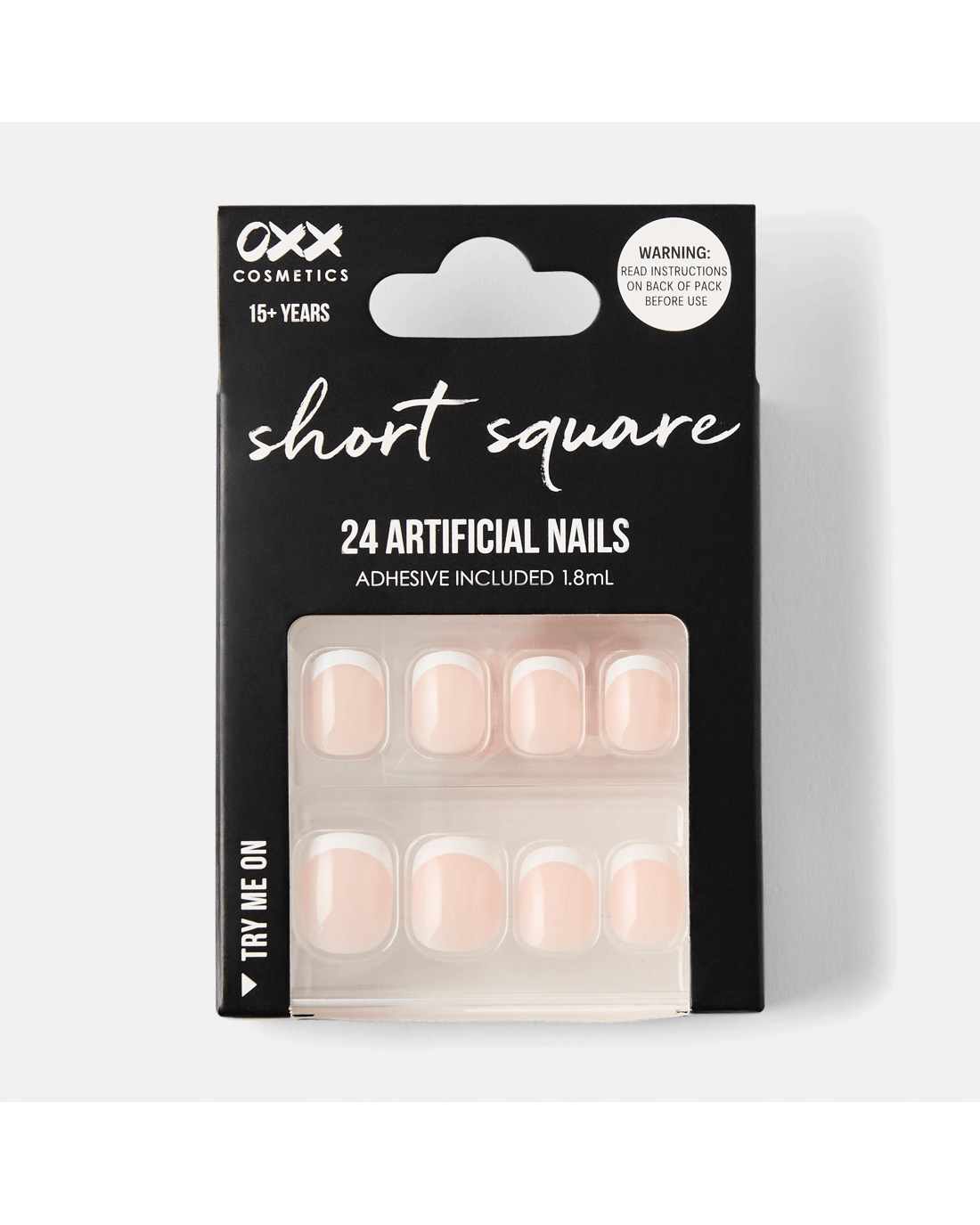 Embrace elegance with the OXX Cosmetics 24 Pack Artificial Nails with Adhesive. These short square nails offer a sleek and modern shape which are perfect for a polished and stylish look.