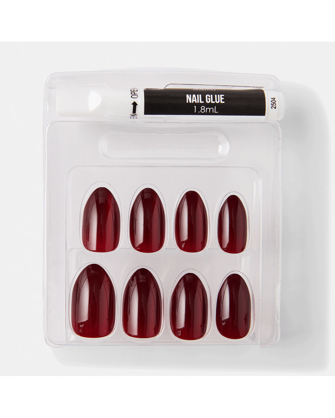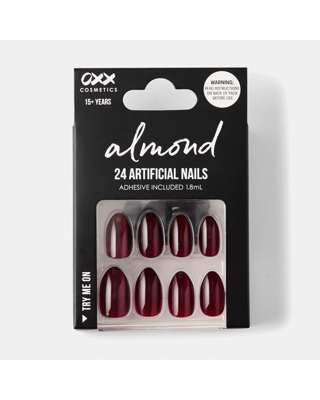 OXX Cosmetics 24 Pack Artificial Nails with Adhesive - Almond Shape, Red