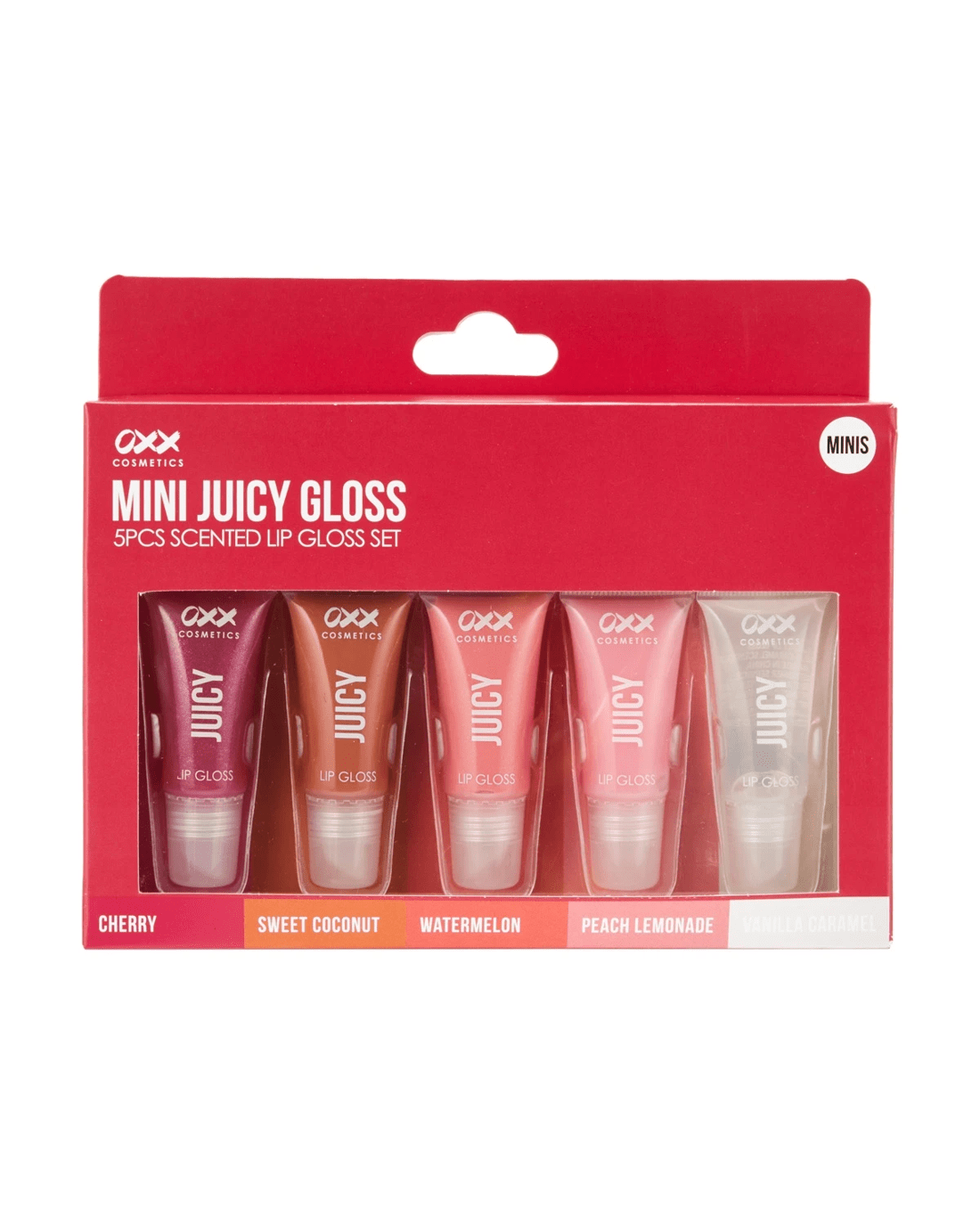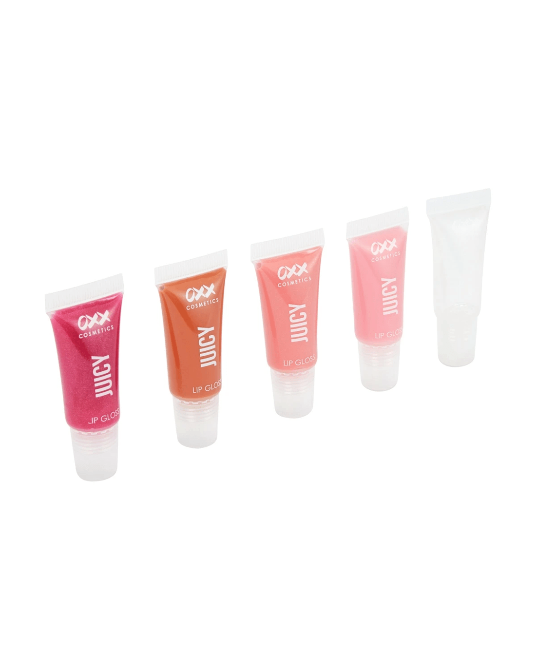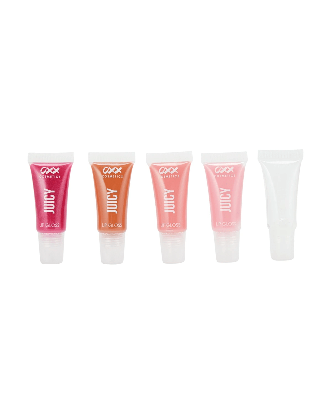 Add a splash of colour to your lips with this OXX Cosmetics 5 Piece Mini Juicy Scented Lip Gloss Set.