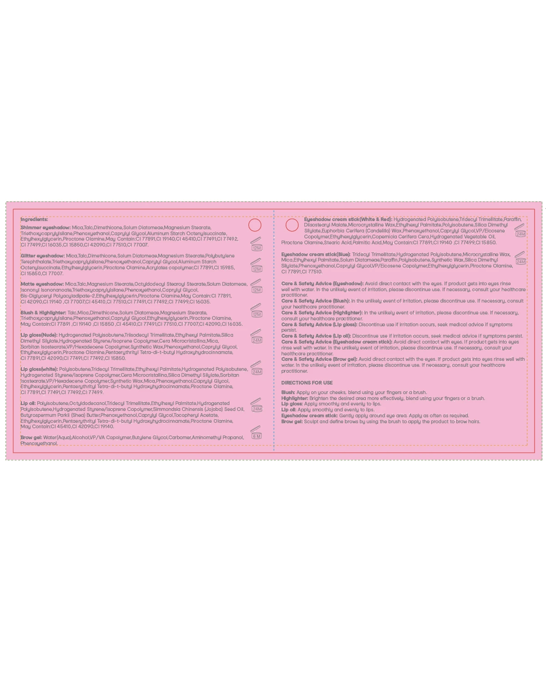 • Eyeshadow cream stick: Gently apply around eye area. Apply as often as required