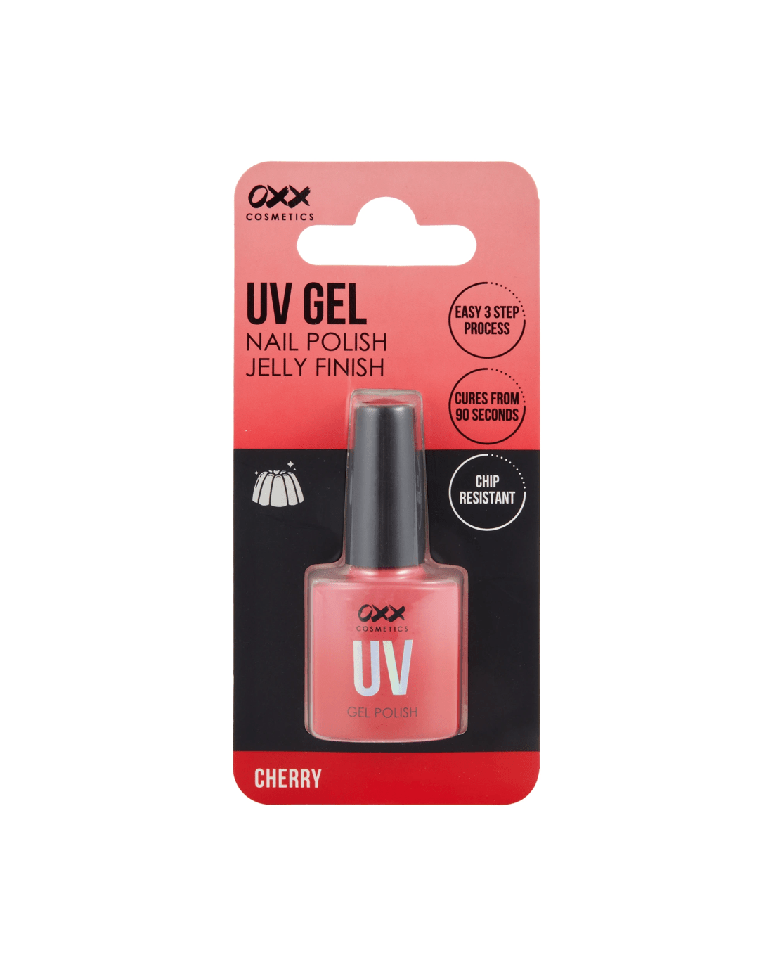 This OXX Cosmetics UV Gel Nail Polish offers a vibrant jelly finish, with the cherry shade adding a bold and striking look.
