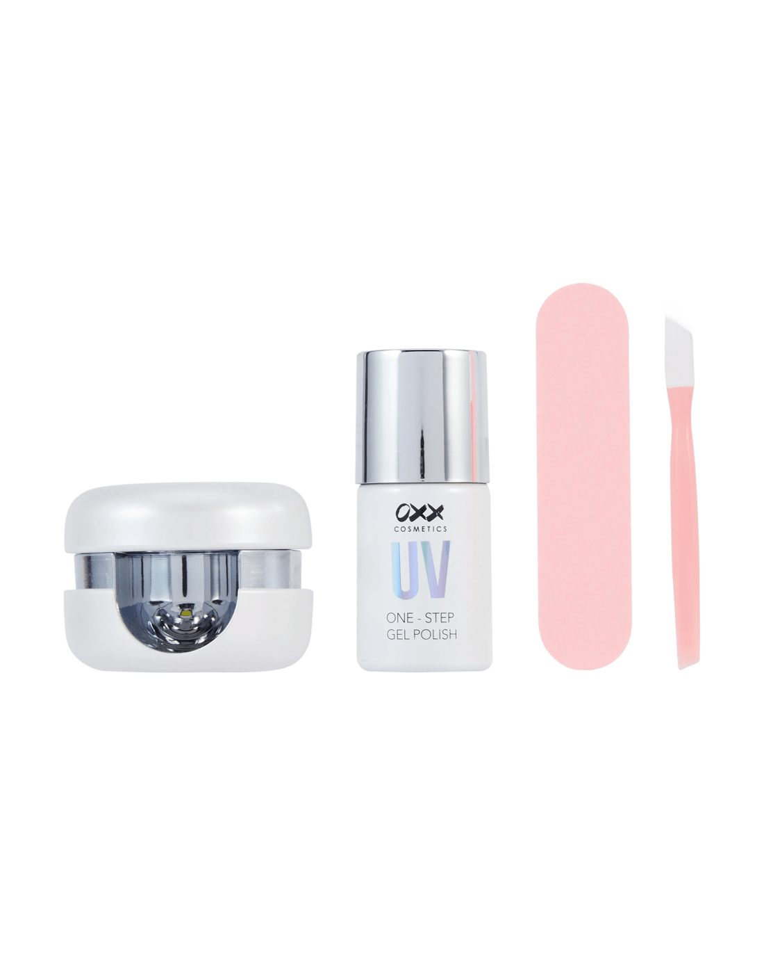 Create beautiful, glossy nails at home with the OXX Cosmetics UV Gel One-Step Gel Polish Kit. Simple to use, it provides everything you need for an easy and polished manicure.