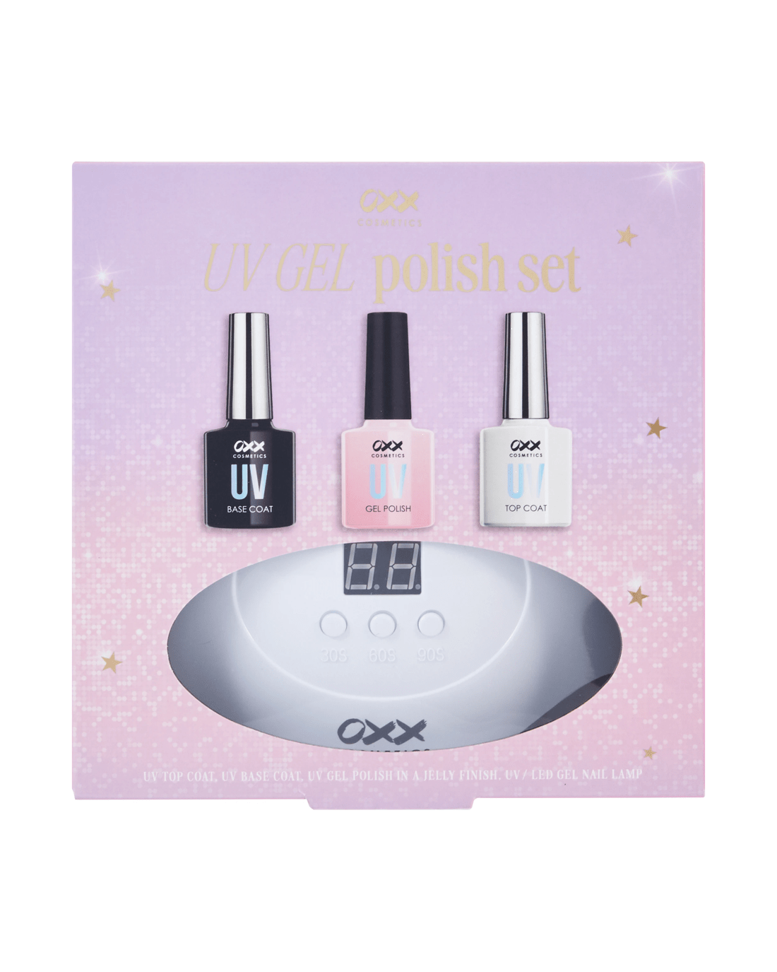 Create salon-worthy nails at home with the OXX Cosmetics UV Gel Polish Set, featuring a selection of vibrant shades designed for a long-lasting, glossy finish.