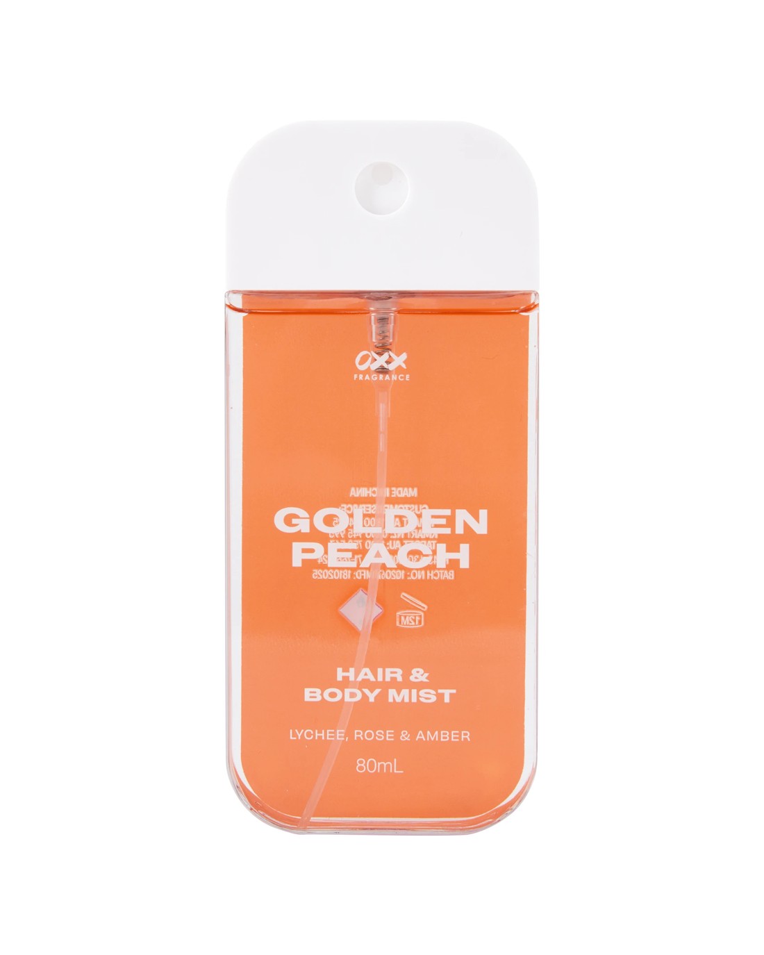 This OXX Fragrance Golden Peach Hair and Body Mist 80ml is a refreshing, dual-purpose mist for hair and body. Infused with a sweet, fruity golden peach scent, leaves hair and skin lightly fragranced, perfect for daily use or quick on-the-go freshness.