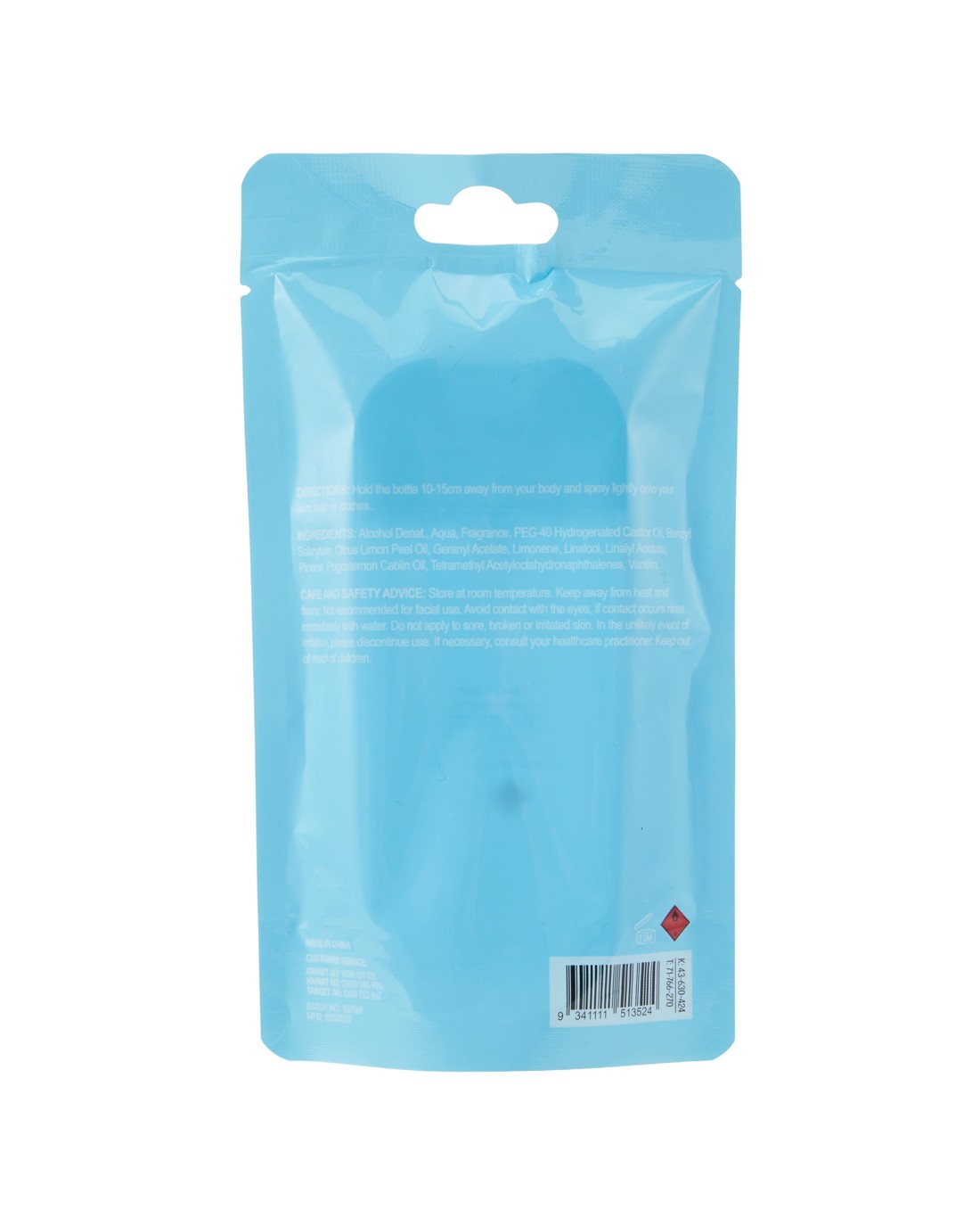 - Directions for use: Hold the bottle 10-15cm away from your body and spray lightly onto your skin, hair or clothes.