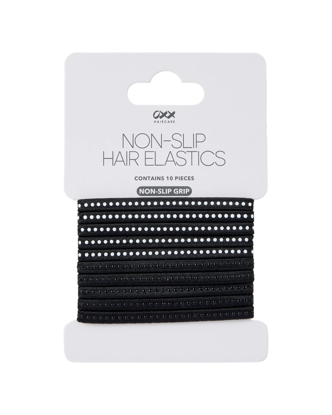 Keep hairstyles secure and stylish with these OXX Haircare 10 Piece Non-Slip Hair Elastics. The rubber grips are designed with a non-slip surface texture to securely hold hair in place, ensuring comfort and stability throughout the day.