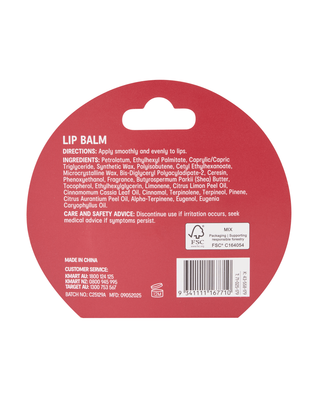- Ingredients: Petrolatum, Ethylhexyl Palmitate, Caprylic/Capric, Triglyceride, Synthetic Wax, Polyisobutene, Cetyl Ethylhexanoate, Microcrystalline Wax, Bis-Diglyceryl Polyacyladipate-2, Ceresin, Phenoxyethanol, Fragrance, Butyrospermum Parkii (Shea) Butter, Tocopherol, Ethylhexylglycerin, Limonene, Citrus Limon Peel Oil, Cinnamomum Cassia Leaf Oil, Cinnamal, Terpinolene, Terpineol, Pinene, Citrus Aurantium Peel Oil, Alpha-Terpinene, Eugenol and Eugenia Caryophyllus Oil