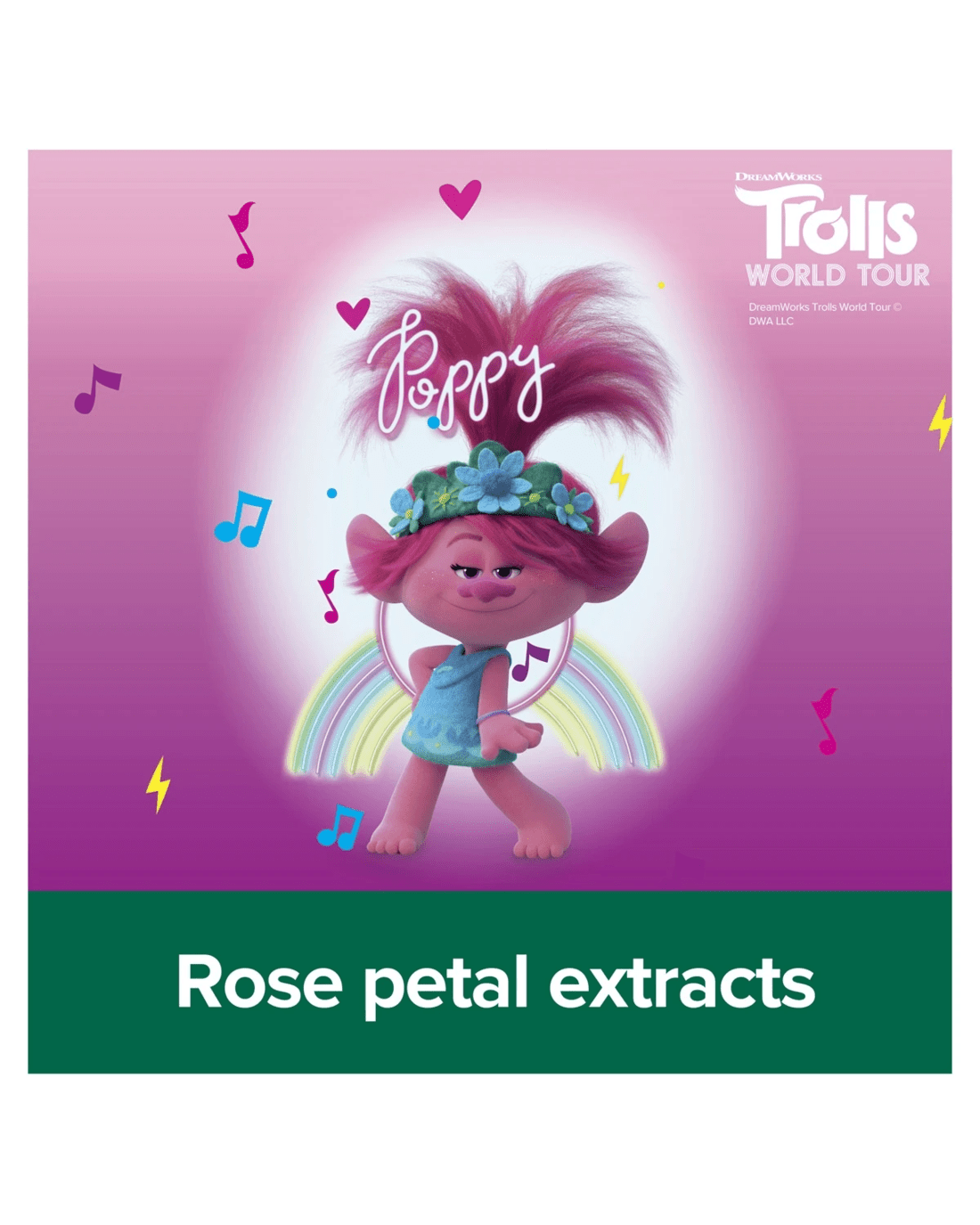 Infused with Rose Petal Extracts, hair is left smelling so great you'll want to sing, dance and hug all day just like a Pop Troll!