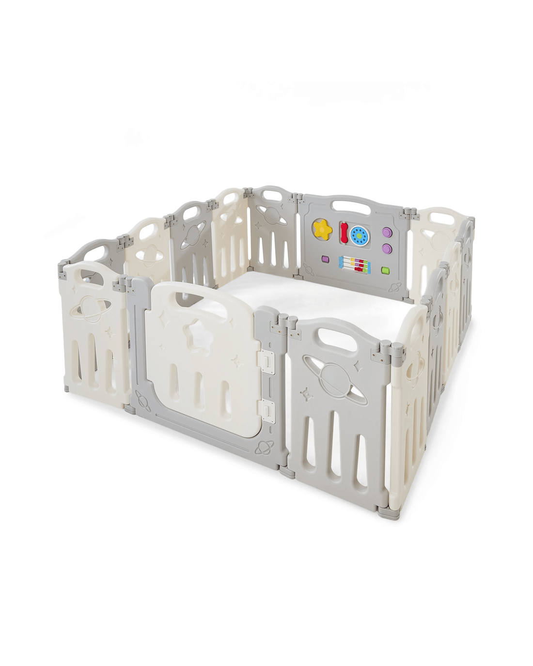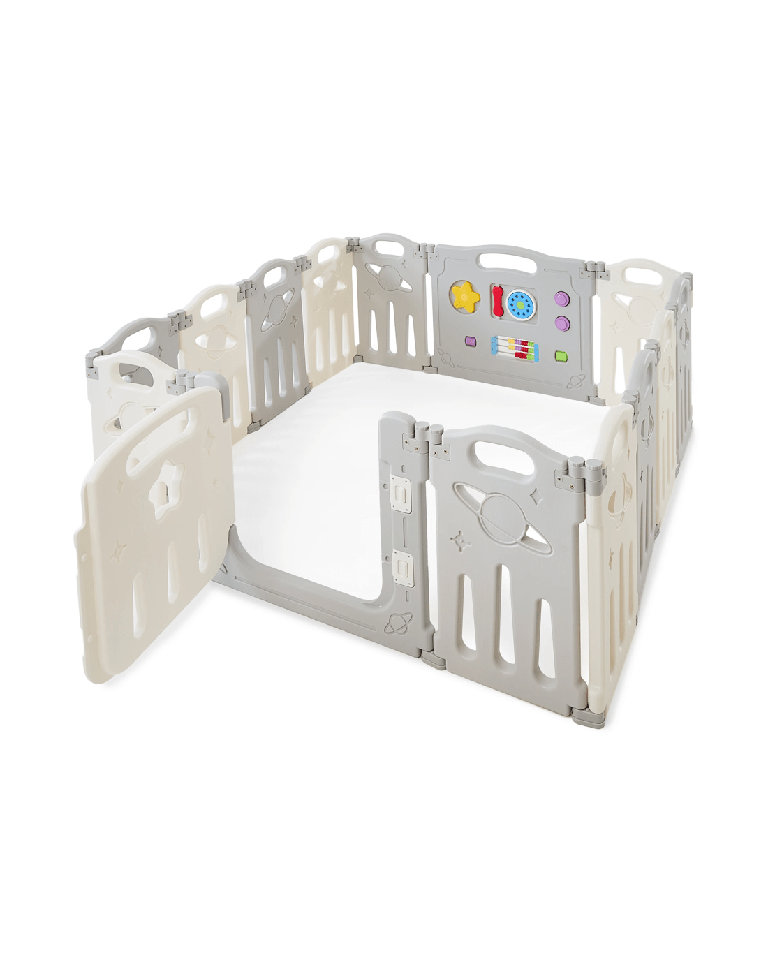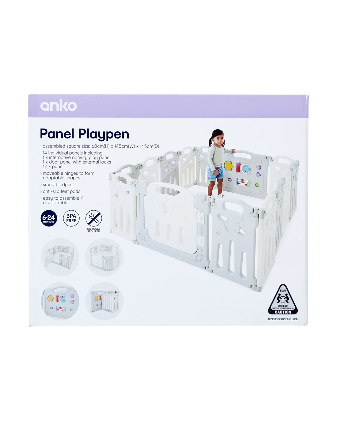 • Includes 1 x interactive activity play panel, 1 x door panel with external locks and 12 x panels