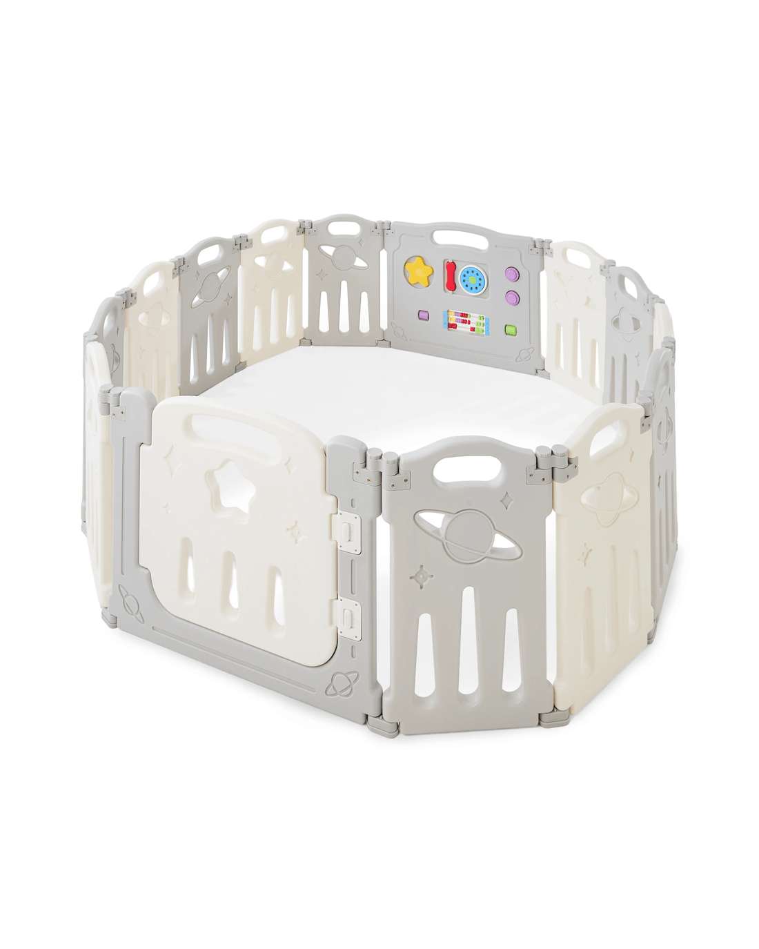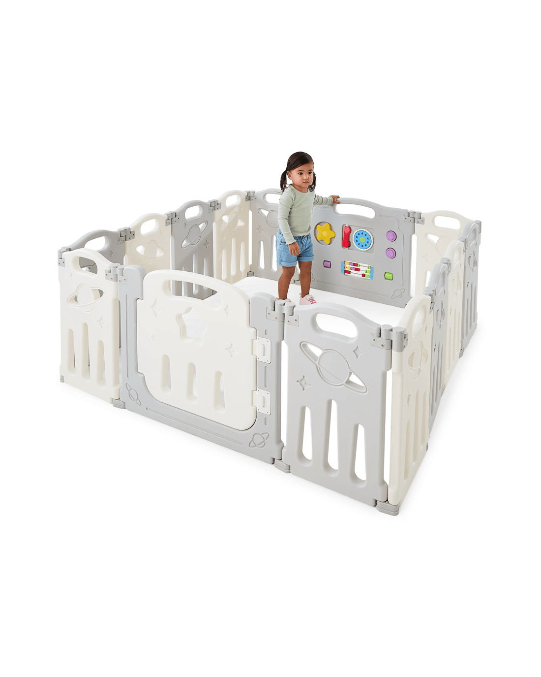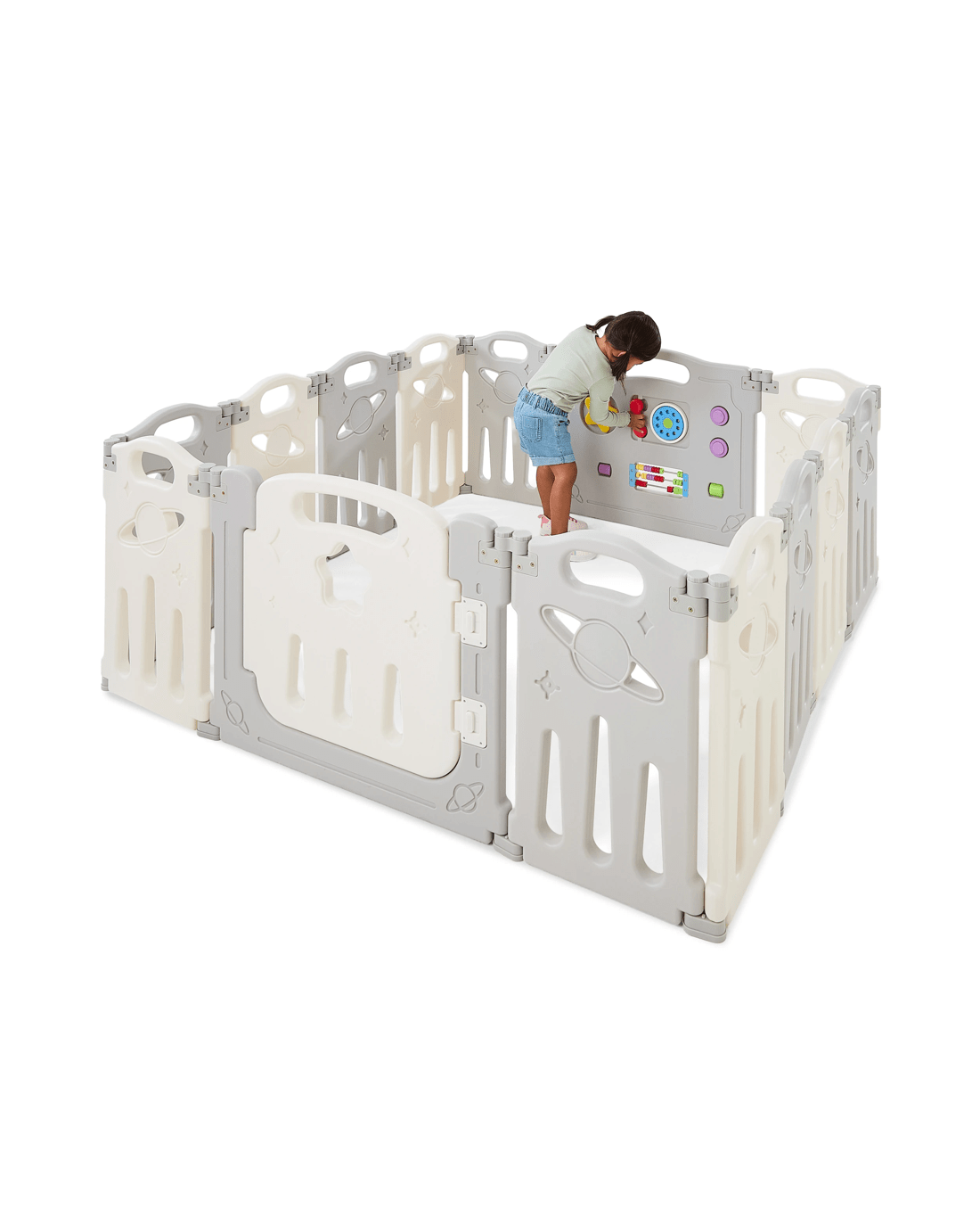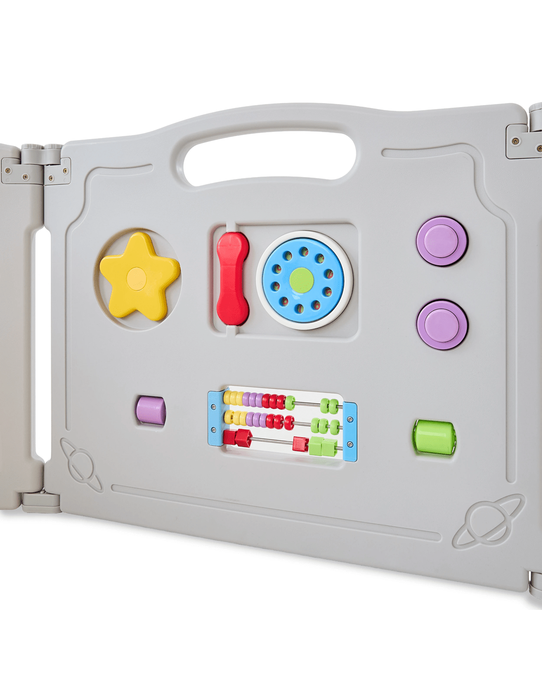 • Includes 1 x interactive activity play panel, 1 x door panel with external locks and 12 x panels