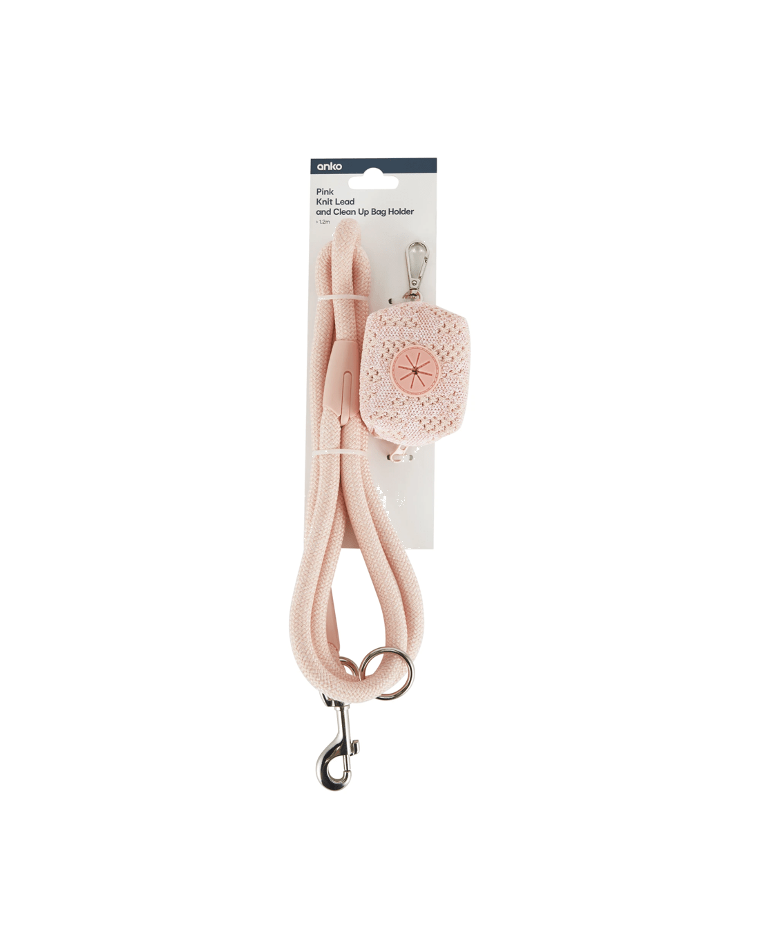 The Pet Pink Knit Lead and Poo Bag Holder combines style and practicality for walks with your pet. Featuring a soft-knit design, it keeps waste bags conveniently stored and accessible.
