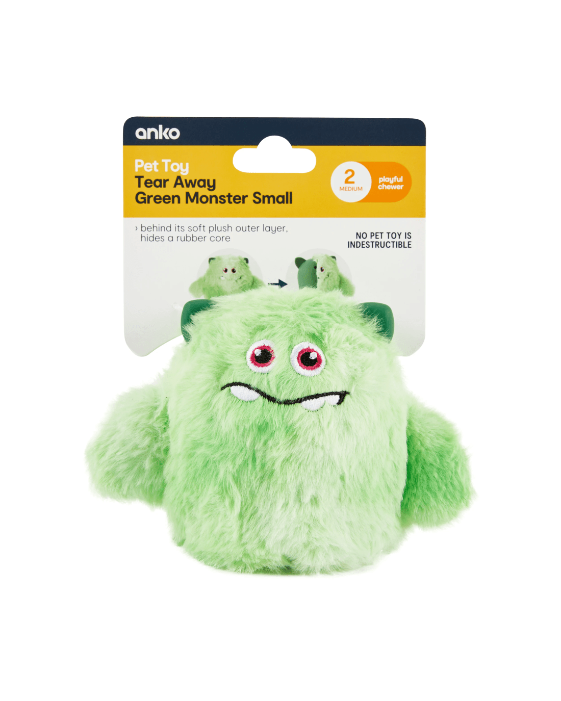Pet Toy Tear Away Green Monster - Small