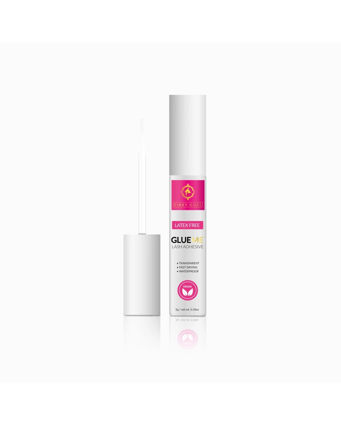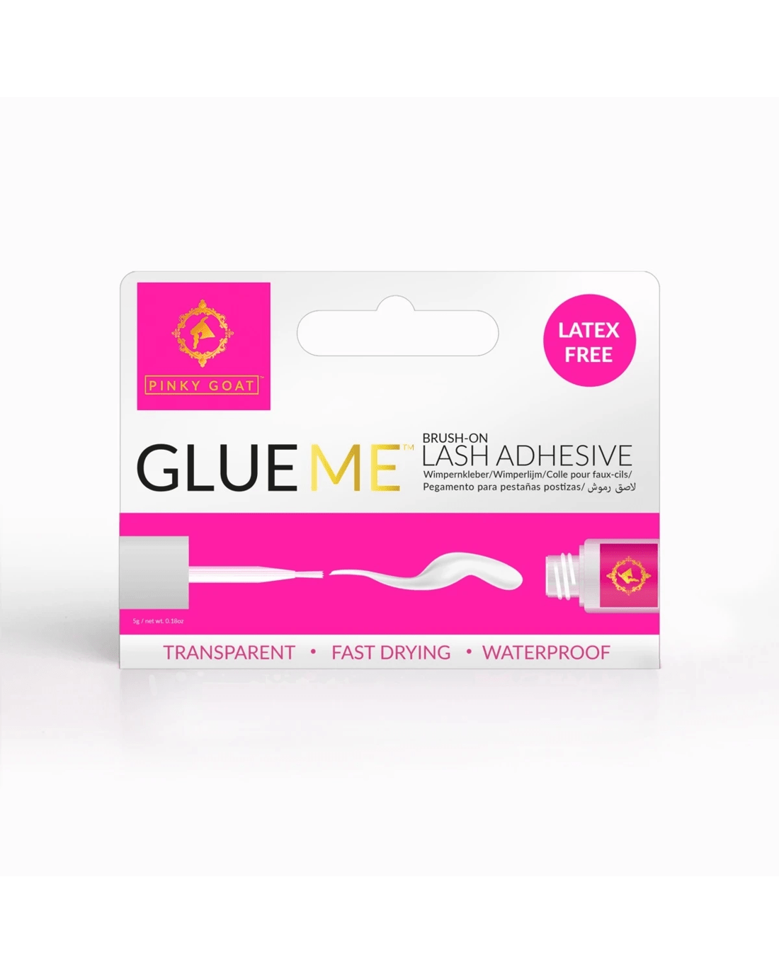 The Pinky Goat Glueme Brush-On Lash Adhesive has a fabulous fast-drying, gentle, waterproof formula that dries transparent, with an easy brush-on applicator.