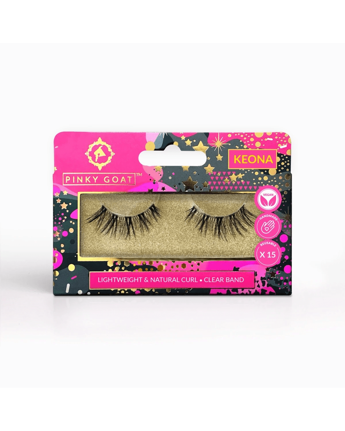 Short, wispy Keona lashes are ultra-lightweight with a clear band for a gorgeous natural look.