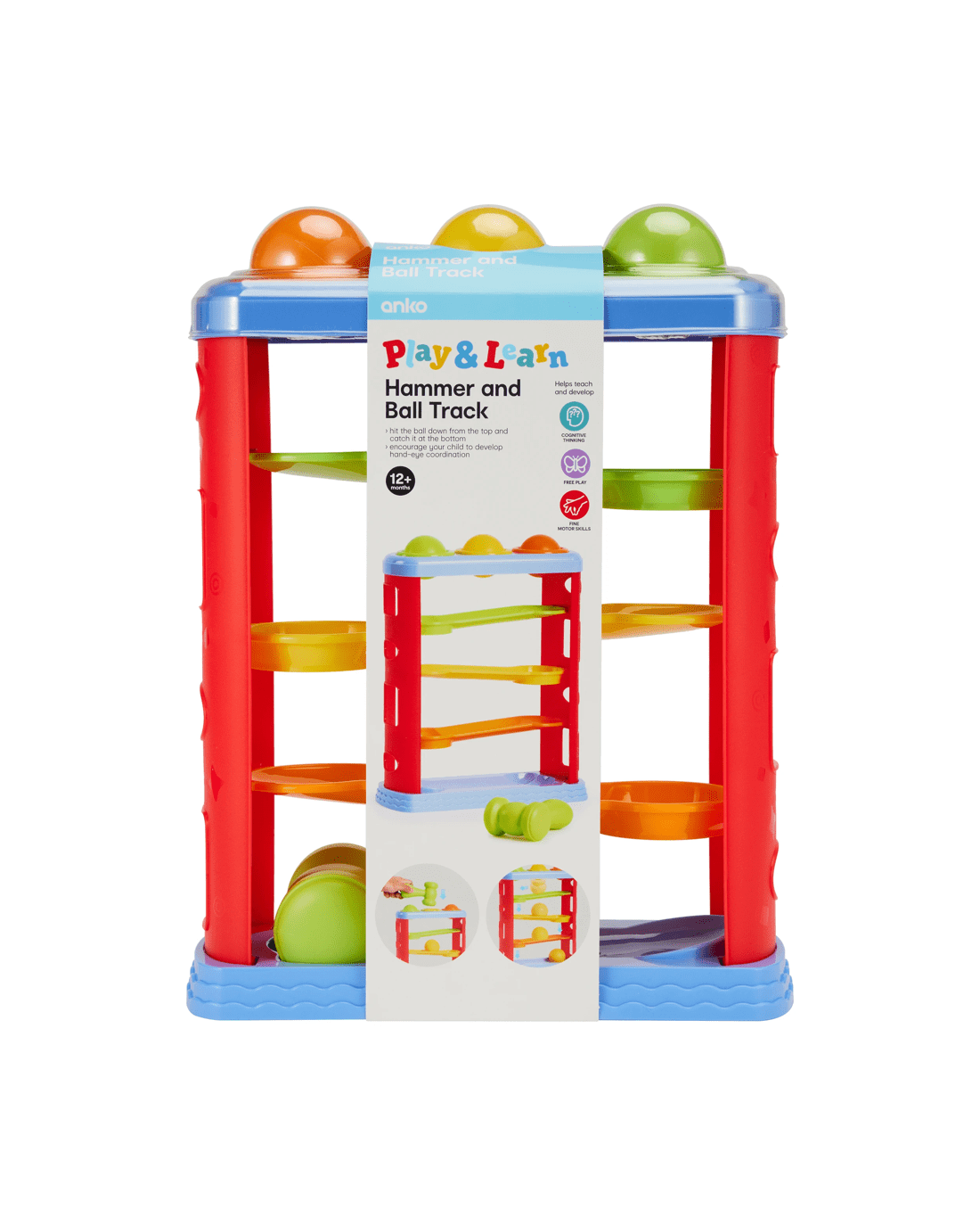 Encourage hands-on play with the Play and Learn Hammer and Ball Track. Kids can hammer colourful balls through holes and watch them roll down the track, promoting coordination, motor skills and cause-and-effect learning through engaging, interactive fun.