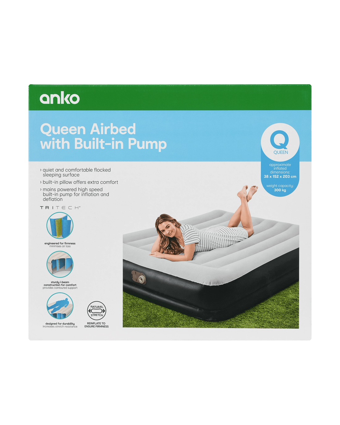 • Dimensions/Size: 203cm (L) x 38cm (H) x 152cm (W) (Approx. inflated)