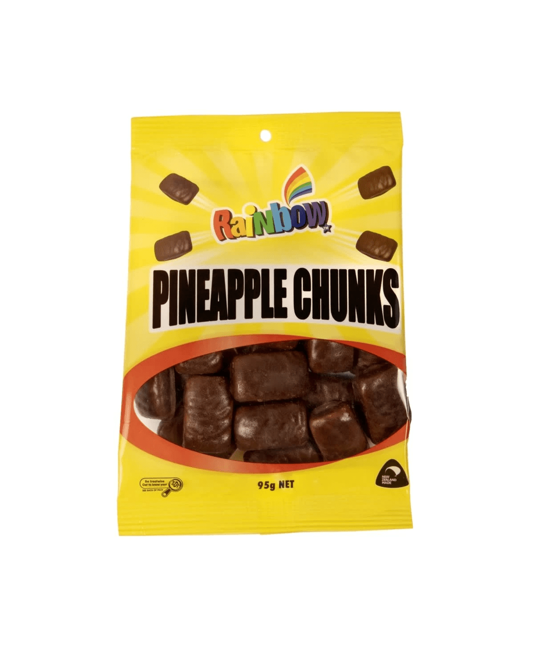 - Chewy pineapple flavoured chunk, covered in chocolate