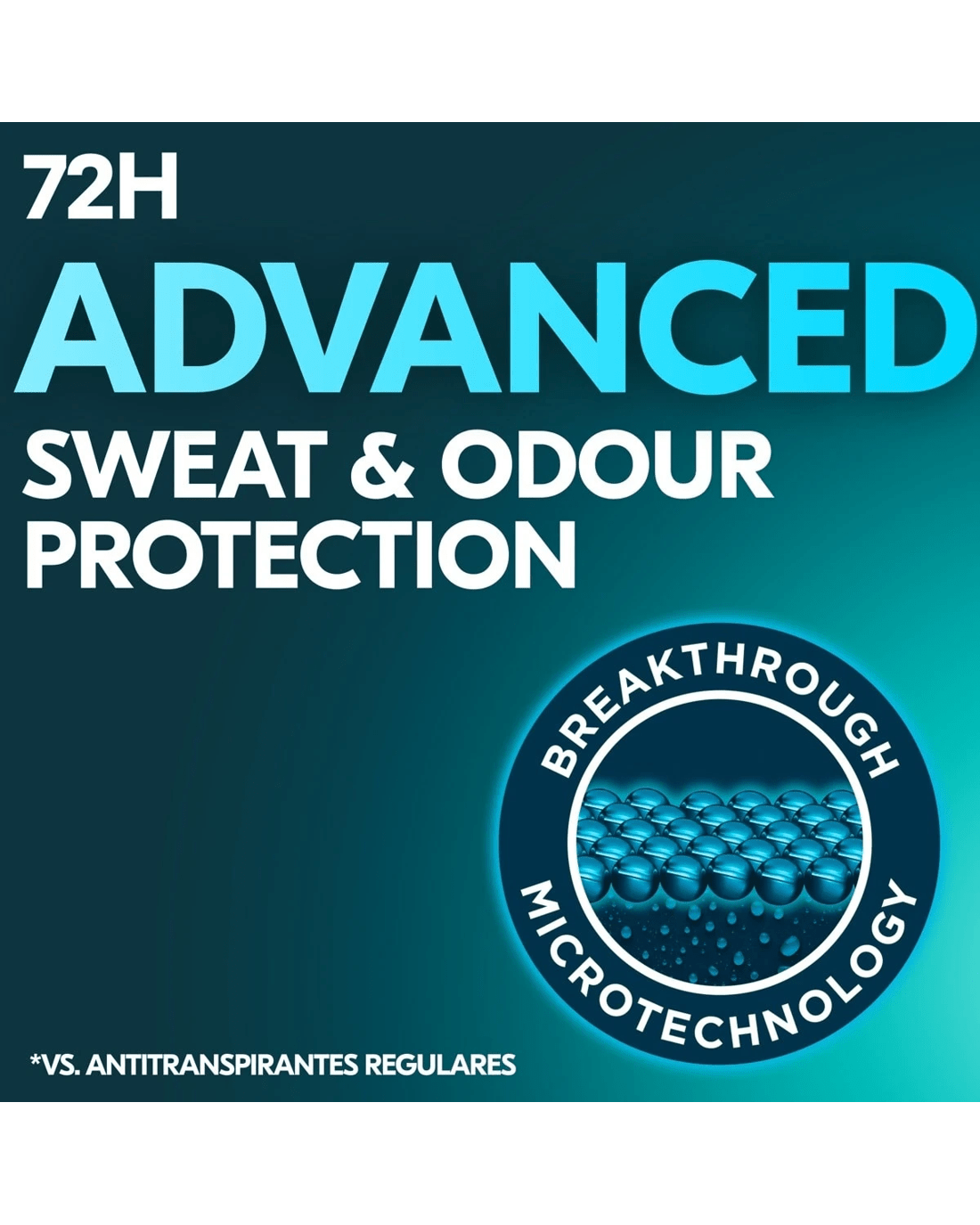 - Breakthrough microtechnology: 72-hour advanced sweat and odour protection