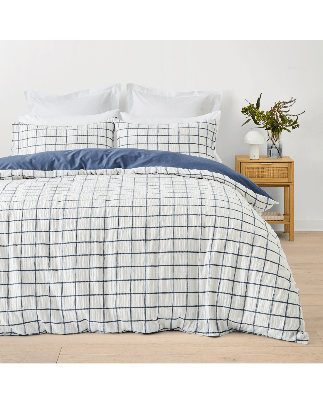 Infuse your space with modern elegance - crafted from Australian-grown cotton, the Rhys Check Quilt Cover Set brings contemporary charm and comfort.