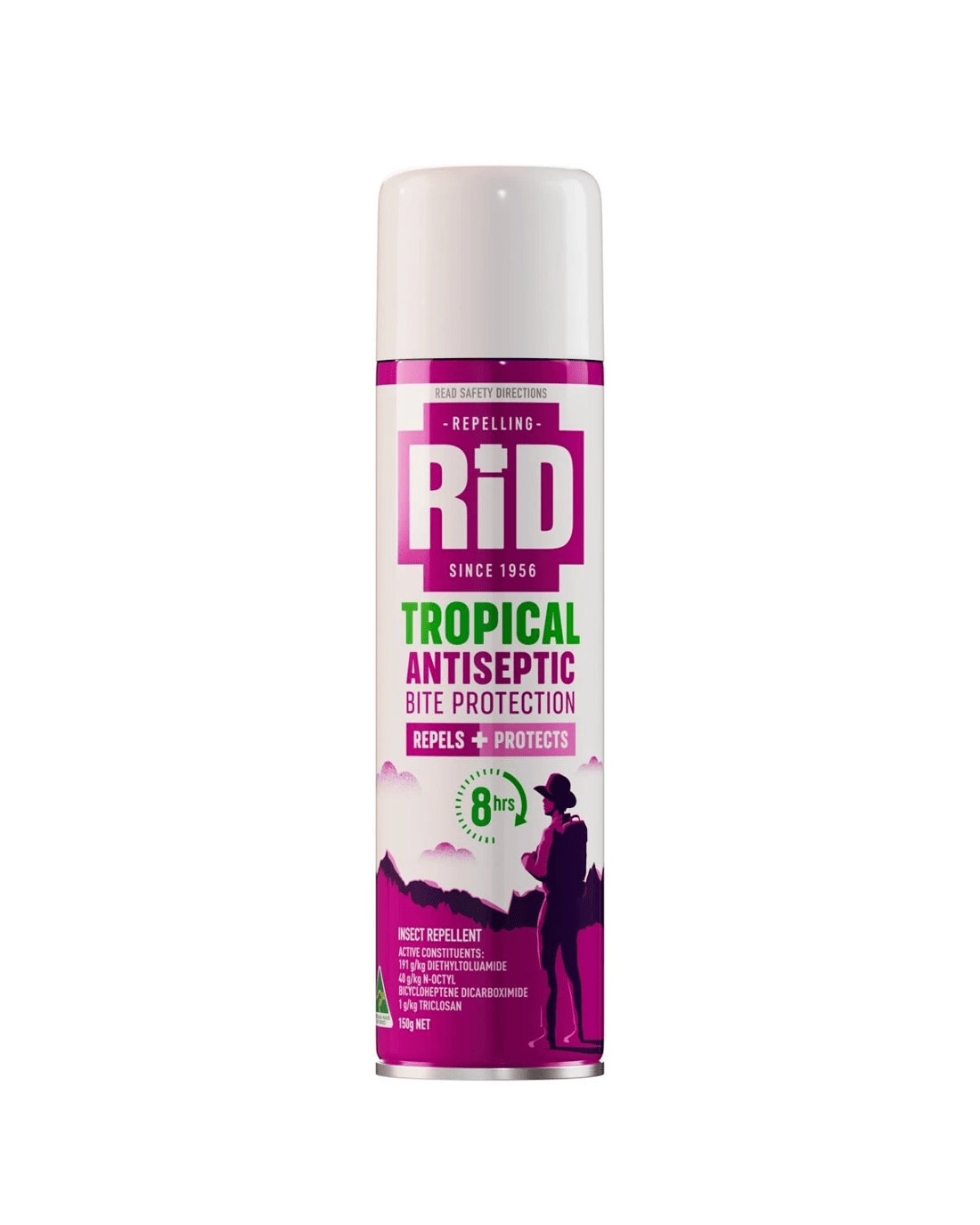 RID's highly effective Tropical Antiseptic Bite Protection not only repels disease-carrying mosquitoes but also provides comprehensive protection against their bites, enhancing your overall safety.