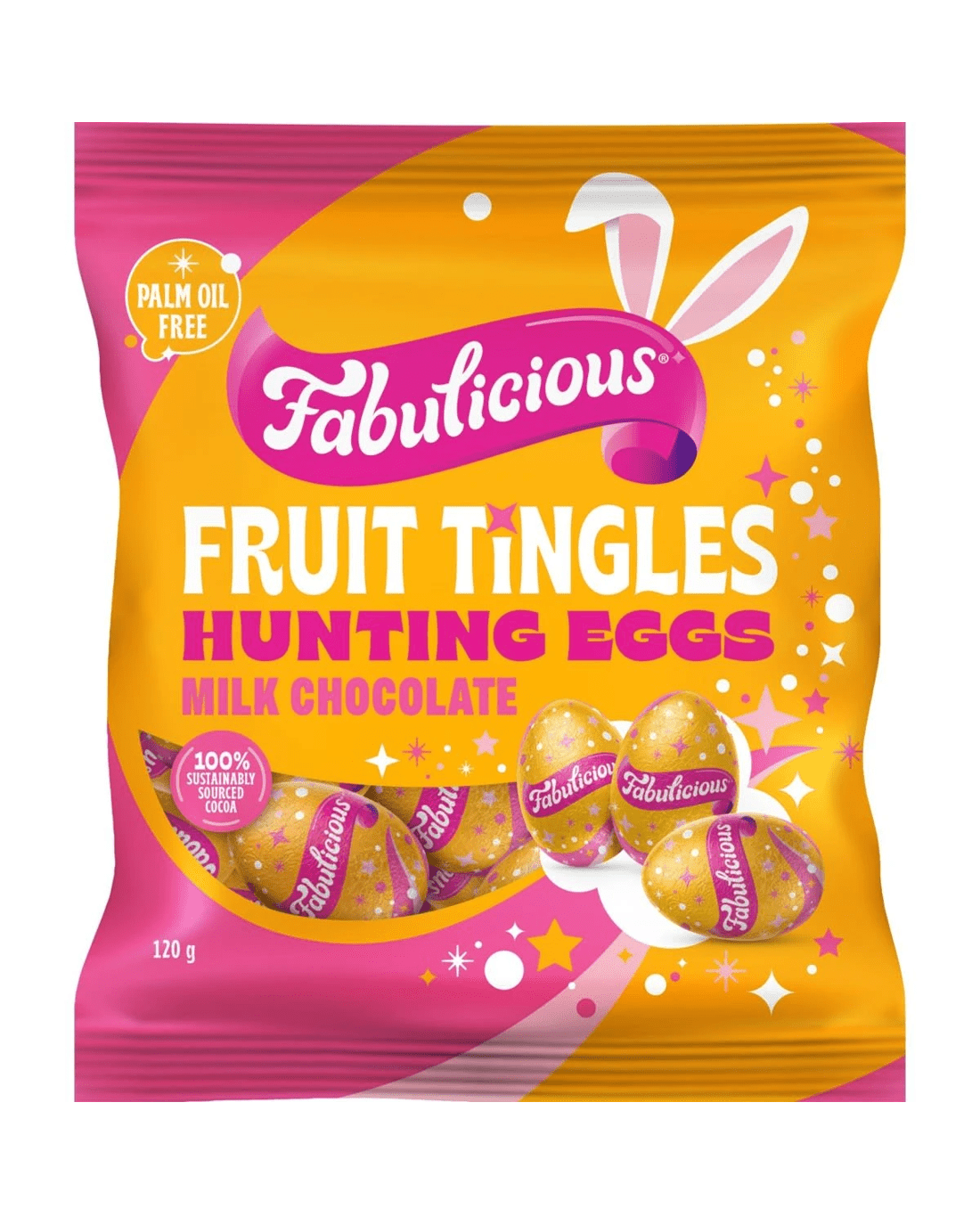 Get on the hunt for treats that tickle the taste buds on Easter morning with Fabulicious Fruit Tingles Easter Eggs. Nothing but delicious milk chocolate easter eggs packed with Fizzy Fruit Tingle pieces. Share the good stuff this Easter with Fabulicious Fruit Tingles Hunting Eggs!
