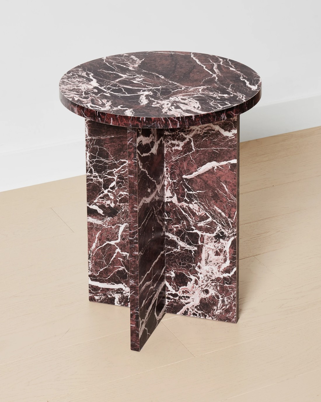 Red Marble Look: Featuring a smooth, round marble-look tabletop, this side table offers a stylish spot for lamps, drinks, books or decorative accents, enhancing the sophistication of your space.
