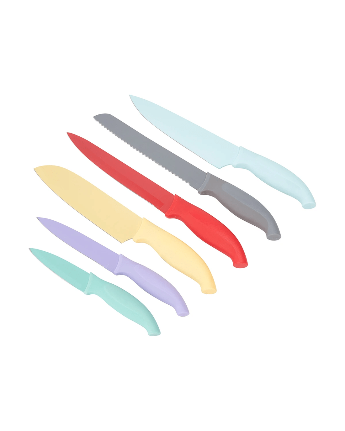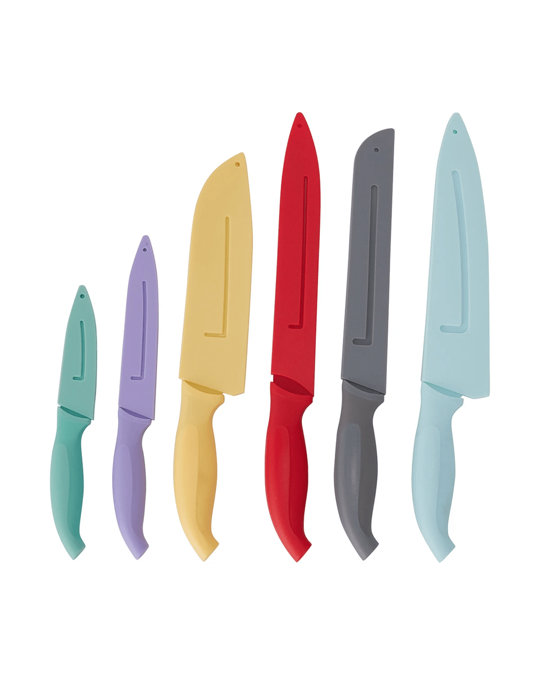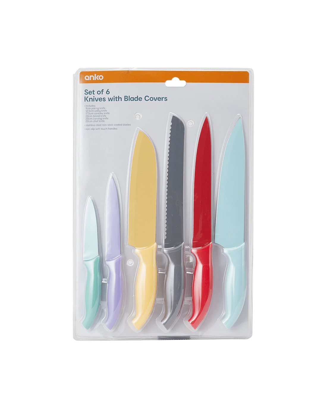 This Set of 6 Knives with Blade Covers offers a practical selection of kitchen tools for everyday food preparation.