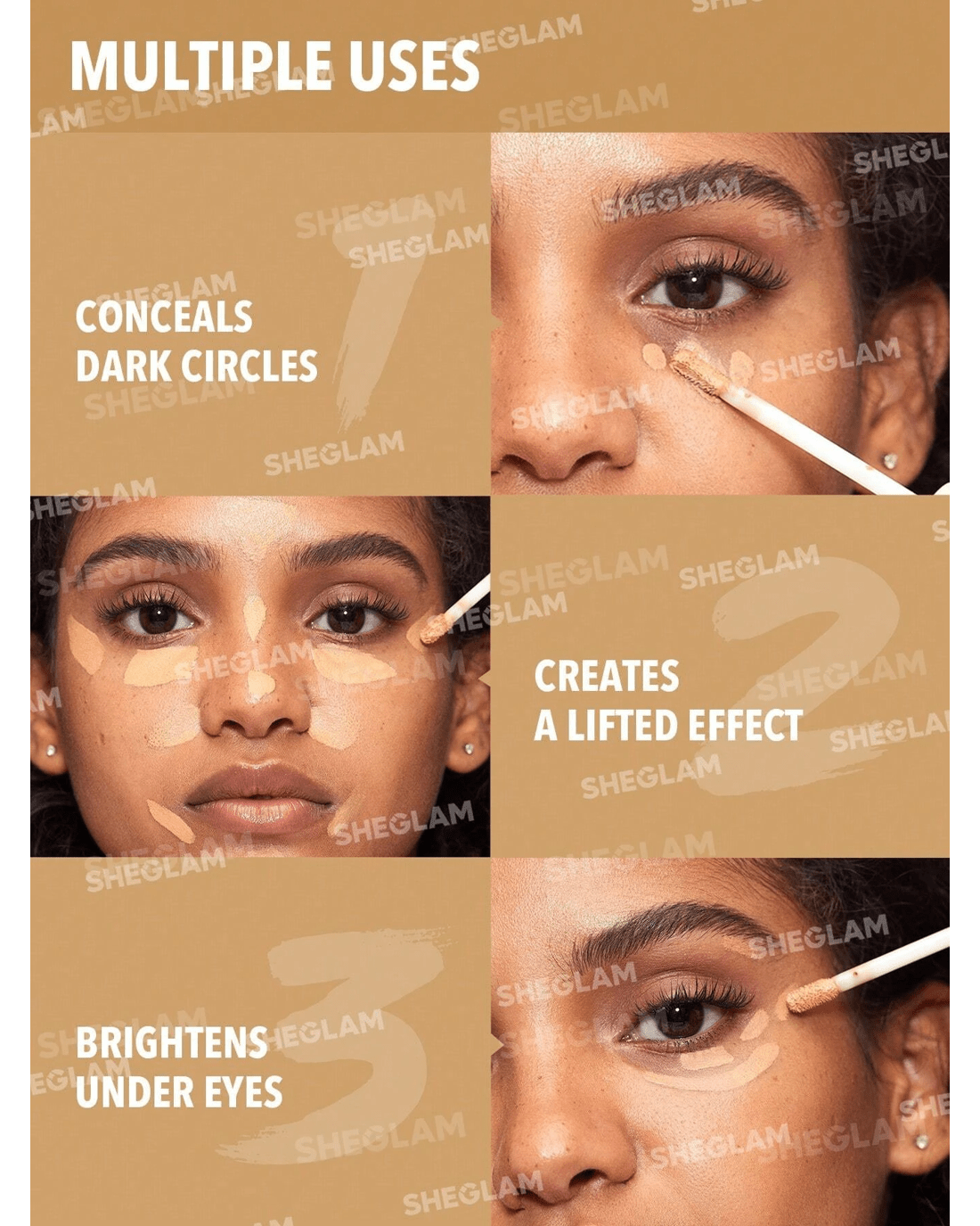 SHEGLAM 12HR Full Coverage Concealer has a soft, matte finish that provides your complexion with 12 hours of perfection. Enjoy medium-to-full coverage that covers all unwanted imperfections. Its highly-pigmented, lightweight formula is super buildable for multiple layers that won't settle into fine lines or creases. Our coverage contours, corrects, highlights, hydrates and has multi-action skin-loving benefits.
