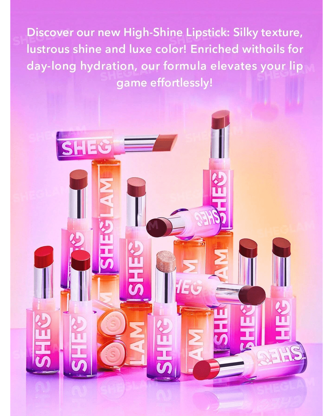 Show off your shine with SHEGLAM's Mirror Kiss High-Shine Lipstick. The perfect mix of gloss, comfort, and colour for lips that light up every room.