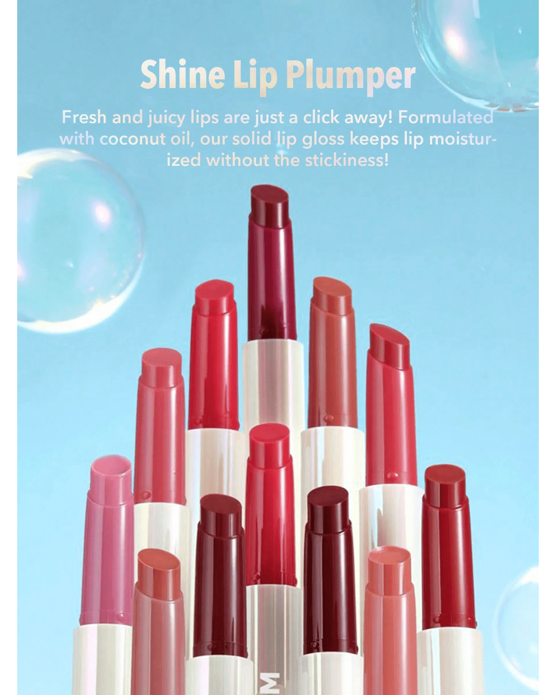 - Fresh and juicy lips are just a click away! Formulated with coconut oil, our solid lip gloss keeps lips moisturised without the stickiness