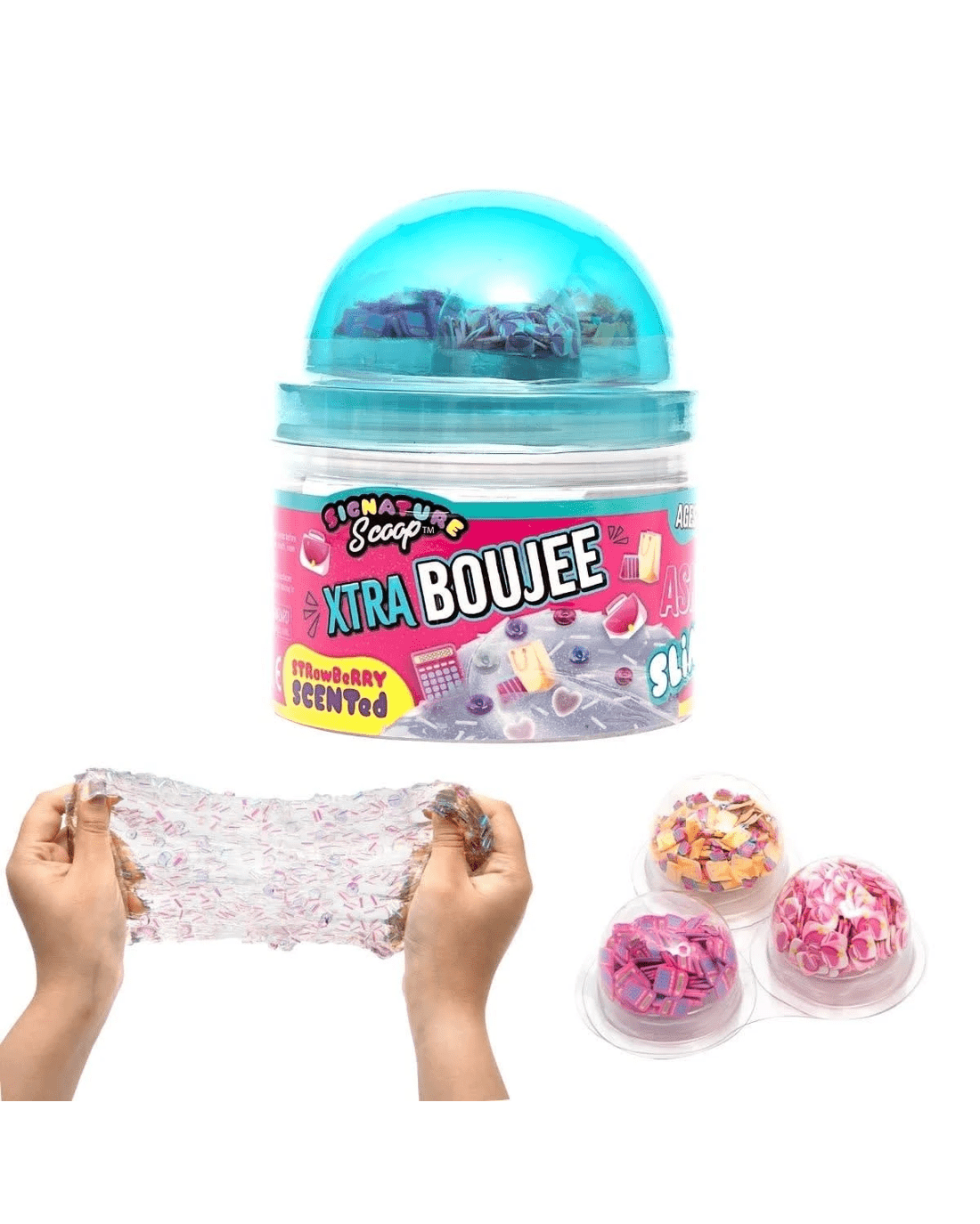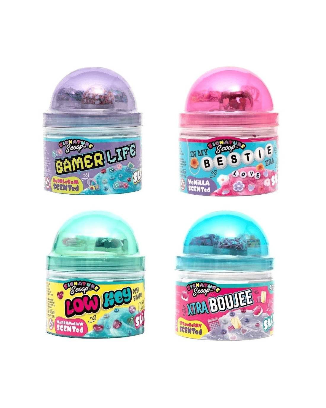 *Each sold separatelySlay the slime game with Signature Scoop's It's Giving Gen Z Range! This collection of premium slimes is each packed with three iconic Gen Z themed mix-ins to decorate, stretch, display and vibe with! Whether you're in your main character moment or deep into your Bestie Era - there is a scoop for every mood!