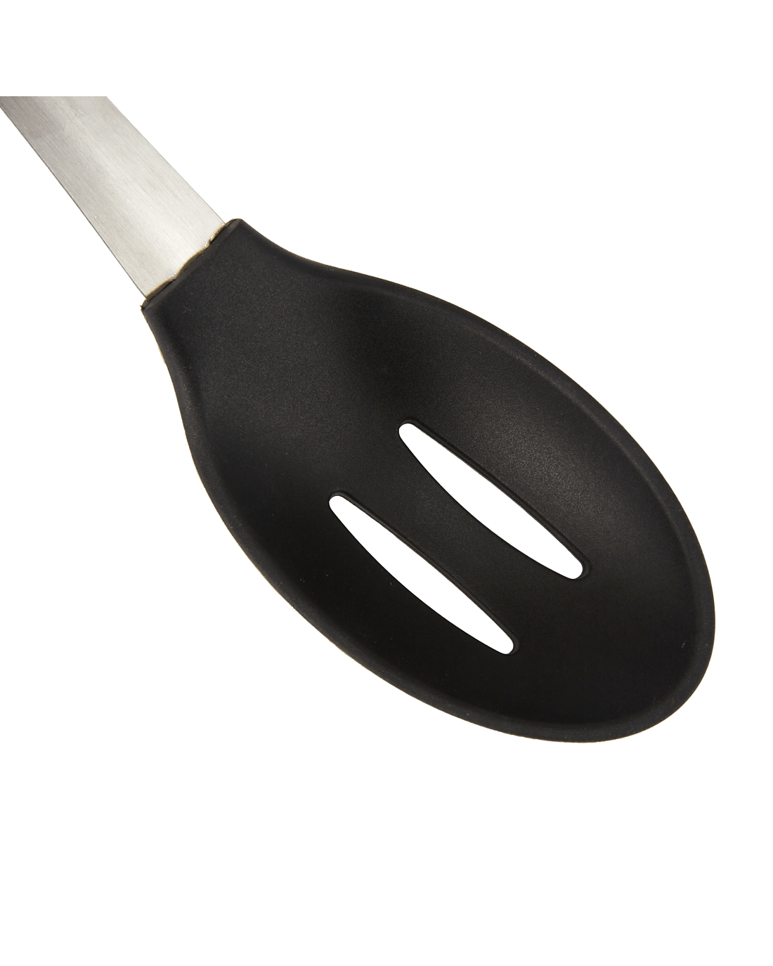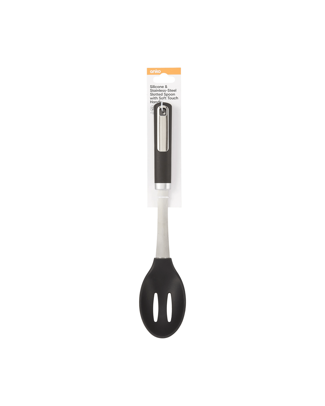 Silicone and Stainless Steel Slotted Spoon with Soft Touch Handle Specifications- Product dimensions: 33cm (H) x 6.7cm (W) x 6.7cm (D)
