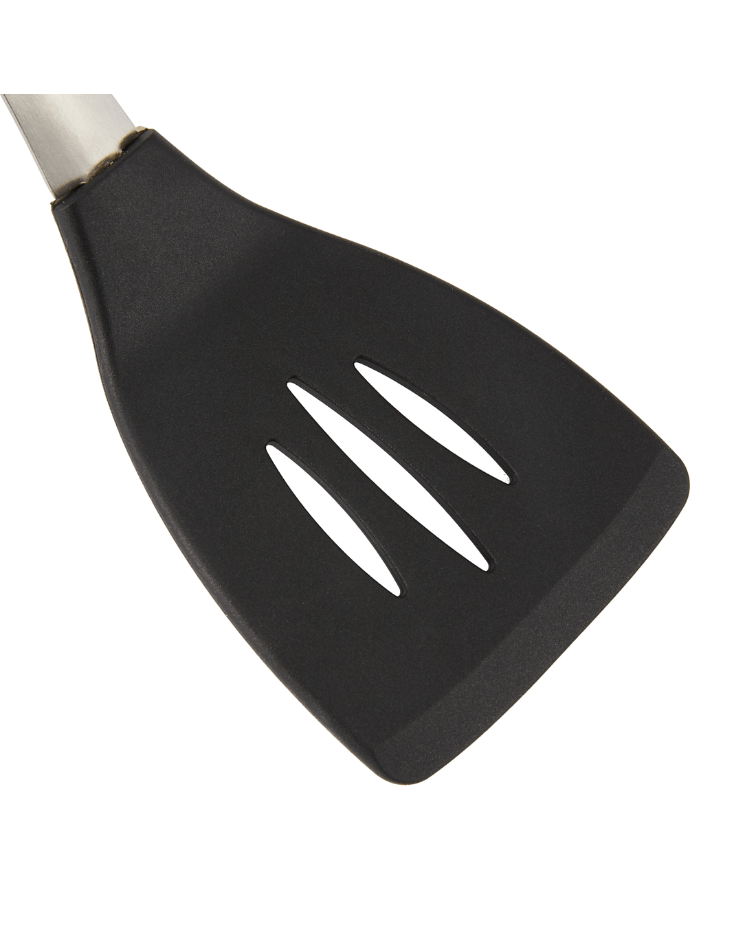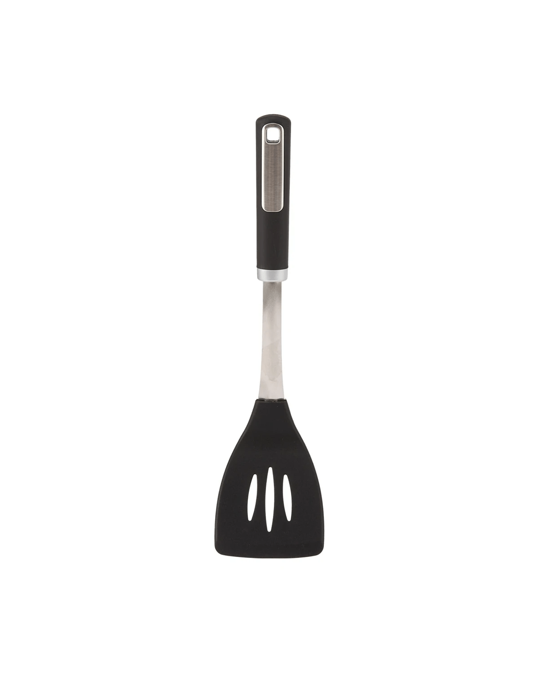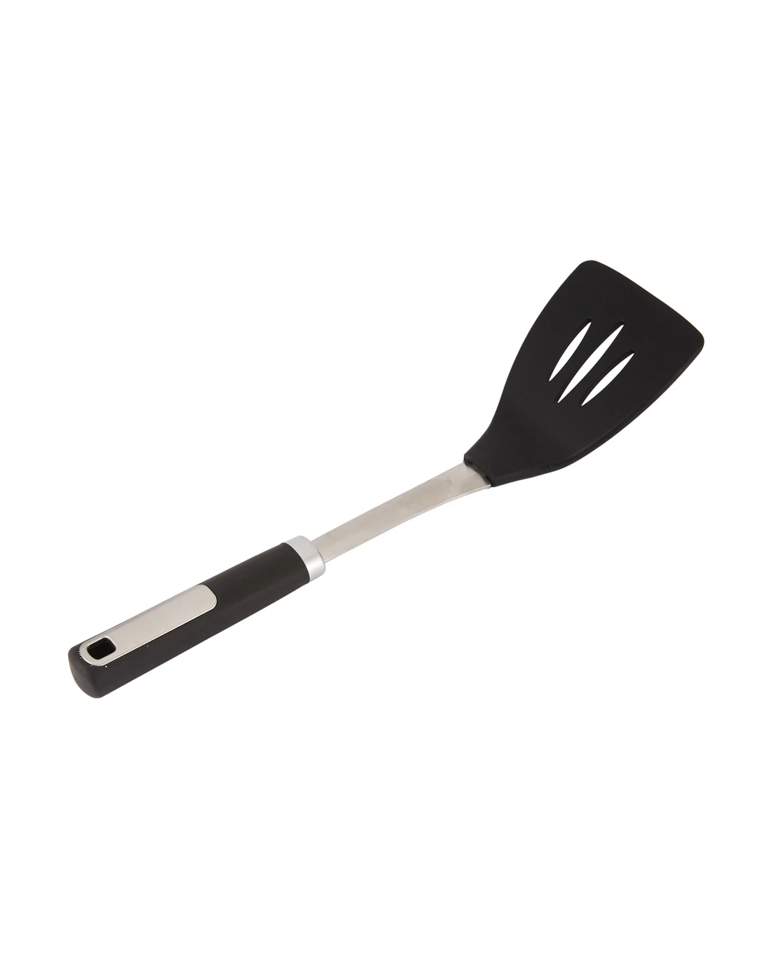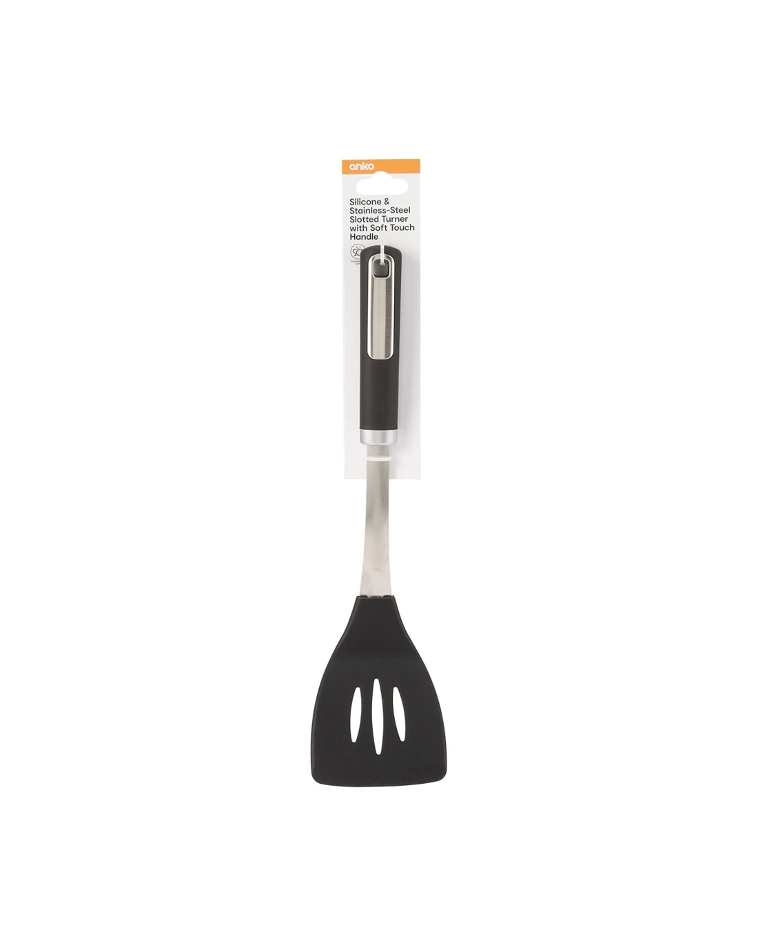 Silicone and Stainless Steel Slotted Turner with Soft Touch Handle Specifications- Product dimensions: 34cm (H) x 8.5cm (W) x 5.7cm (D)