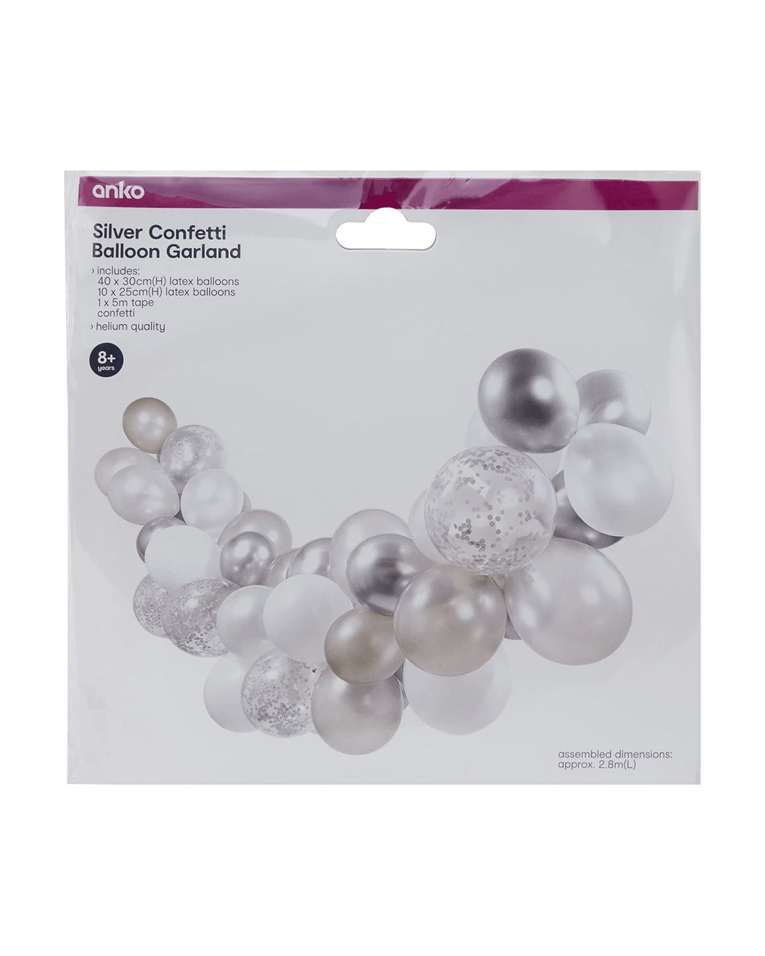 Jazz up your child's birthday party with this silver confetti balloon garland.