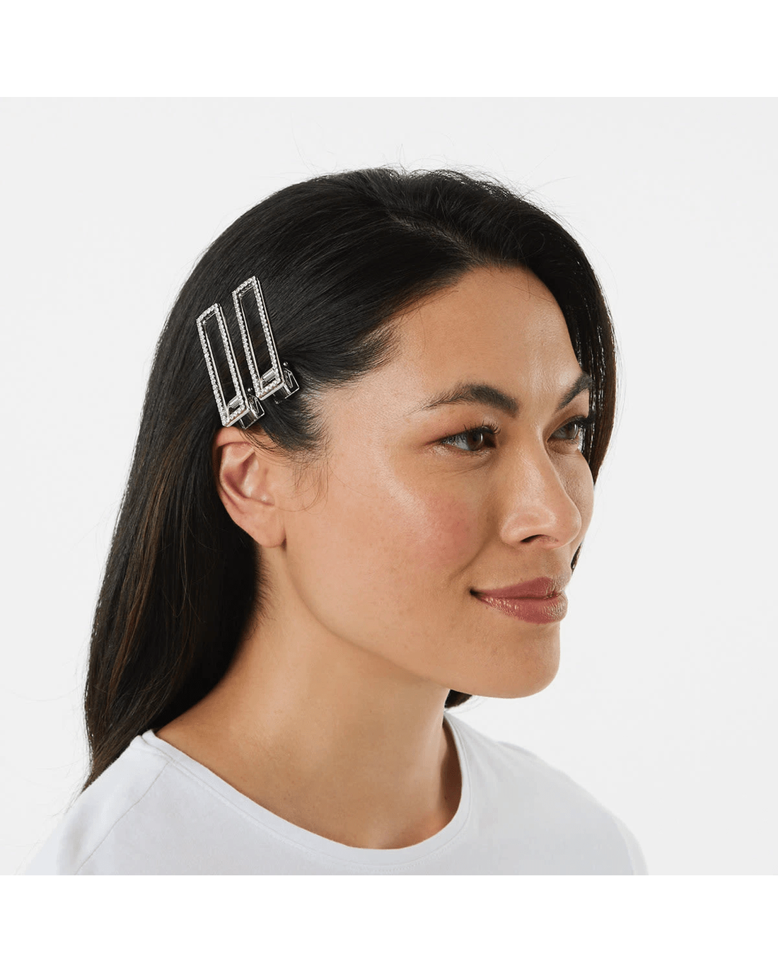 Silver Tone Sparkle Side Hair Clips