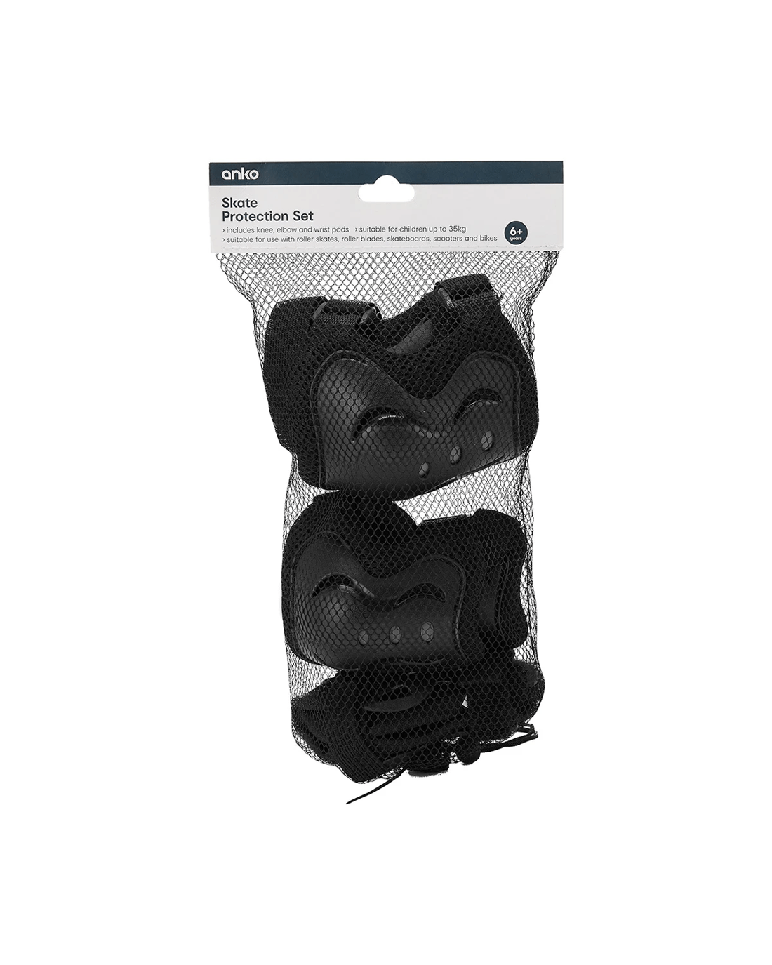 - Includes elbow, knee and wrist pads