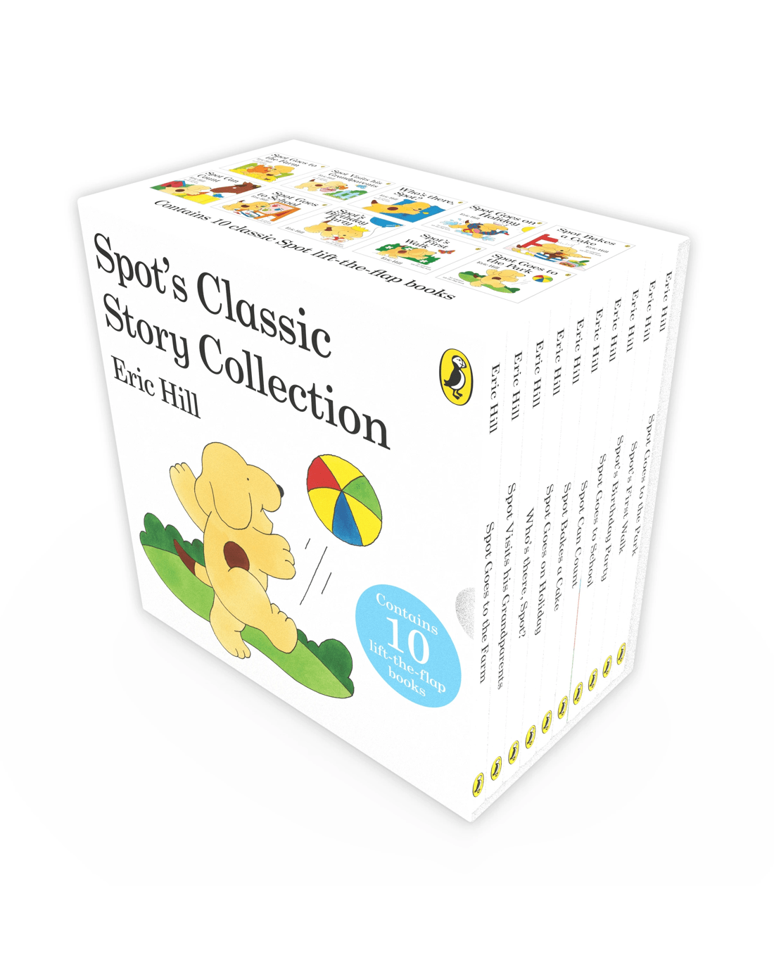 Celebrate the adventures of Spot with this charming slipcase of 10 classic lift-the-flap books. From baking a cake to going on holiday, Spot's gentle mischief and curiosity make storytime fun and interactive. A perfect gift for little ones, this collection will be treasured for years to come.