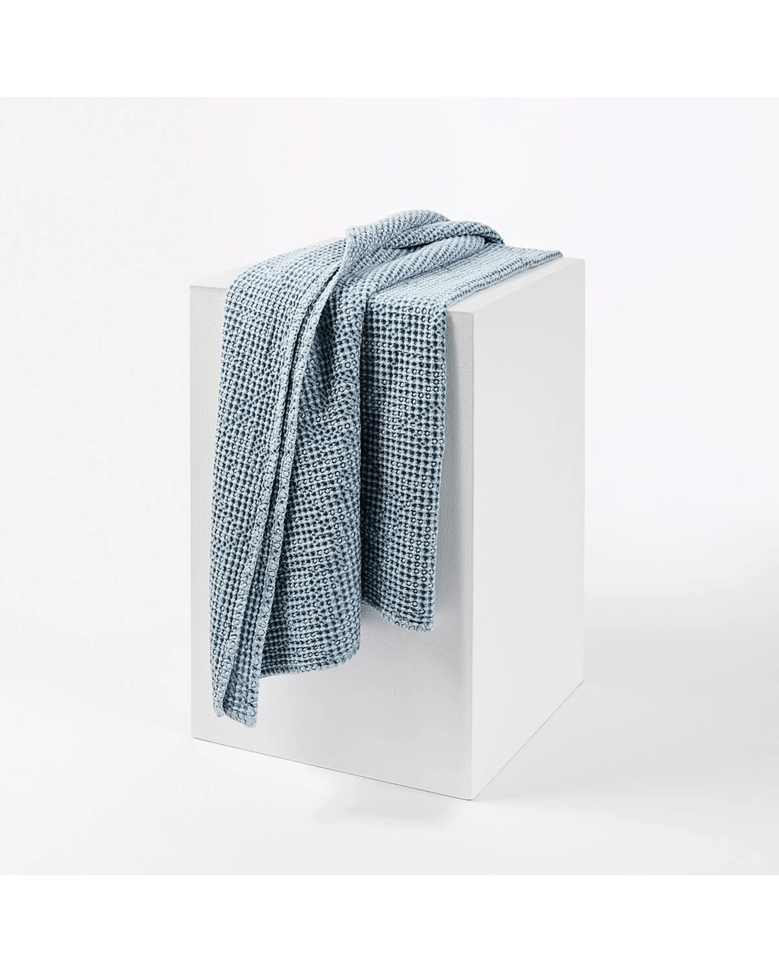 Stonewashed Cotton Waffle Throw - Blue