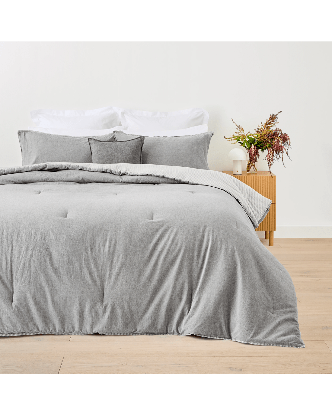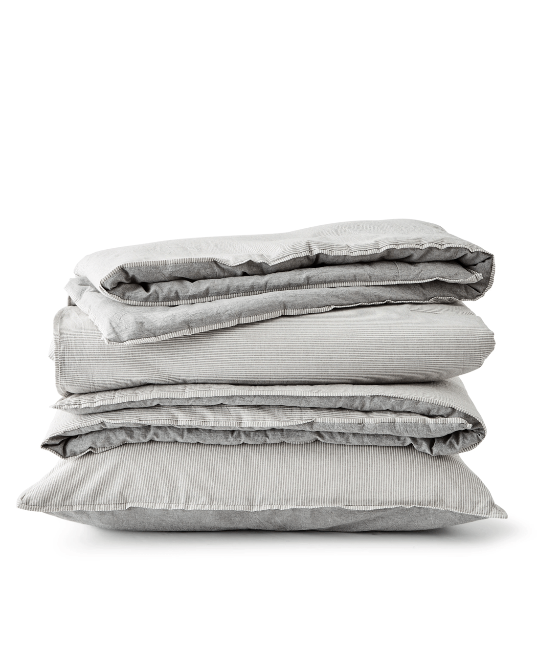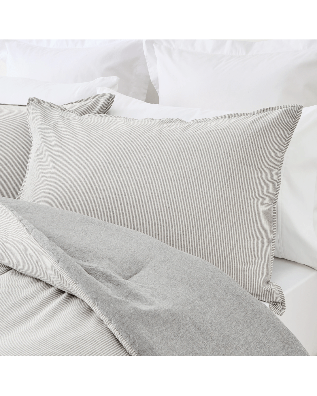 Add effortless style and comfort to your bedroom with this reversible striped comforter set. Its soft fabric and versatile design offer warmth and elegance, making it perfect for year-round use while complementing any modern décor.