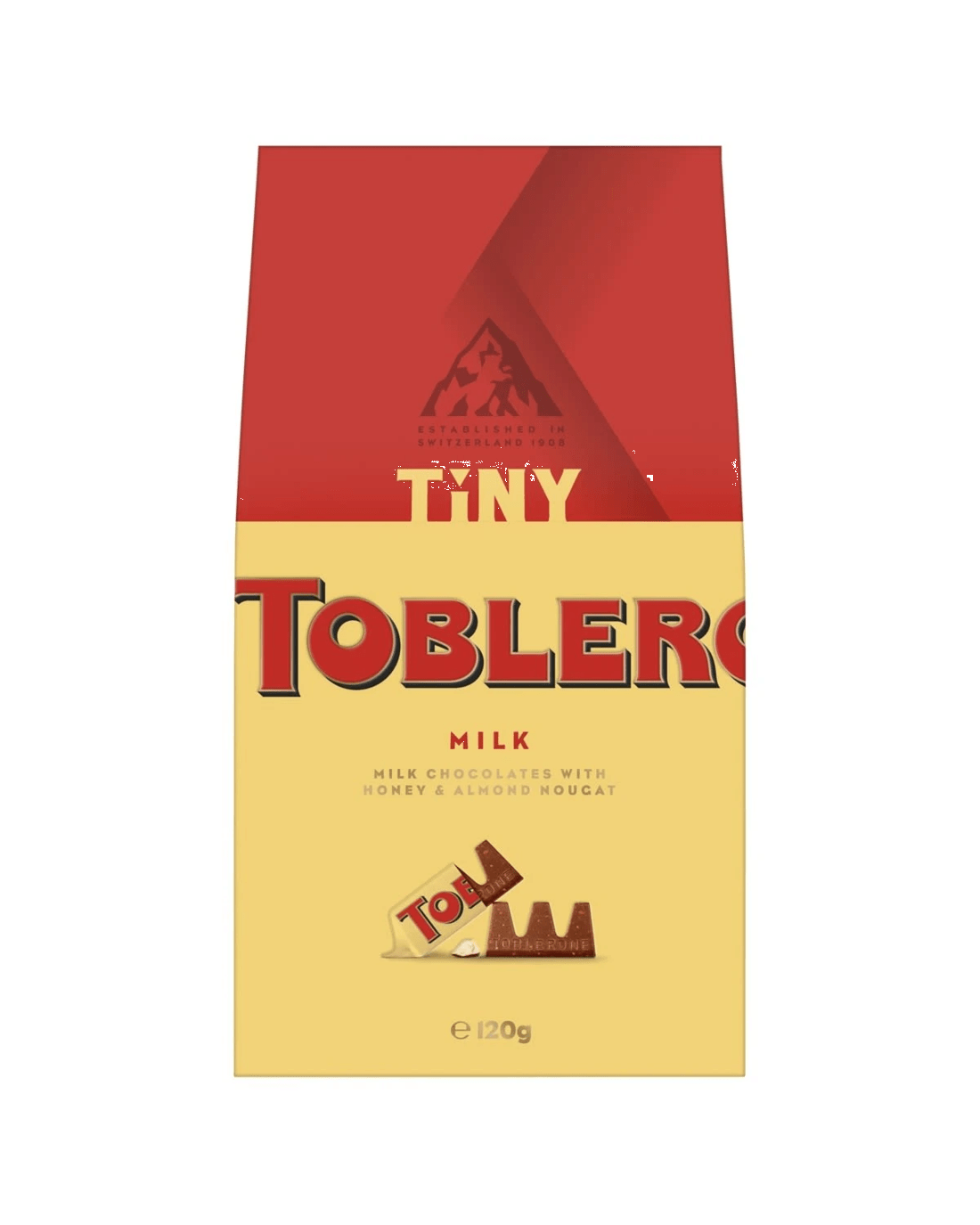 Toblerone Swiss Milk chocolates with honey & almond nougat. The OT (original triangle) is just smaller. This Gift Bag is filled with individually wrapped tiny pieces. The combination of fine honey and almond nougat with smooth Swiss milk chocolate creates a unique Toblerone taste experience.
