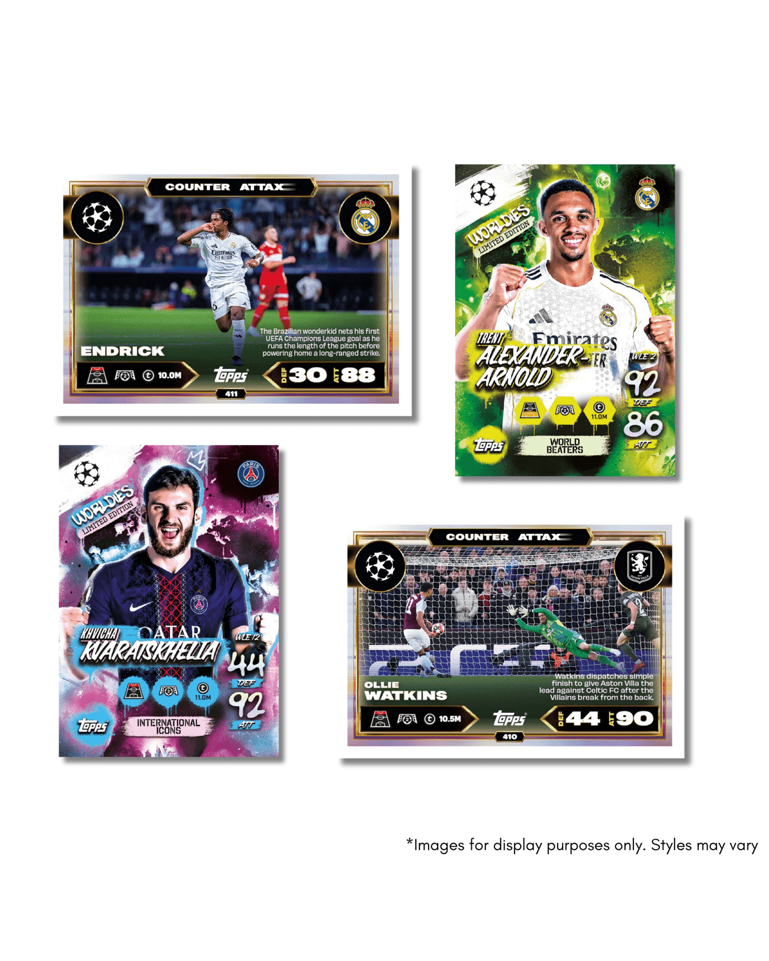 - Chase the ultimate hits! Look out for Chrome Award Winner cards, Lethal Combo dual autos (including the legendary Ronaldinho & Neymar Jr.), real autographs, player-worn relics and stunning new foil finishes - every pack is a chance to score something special!